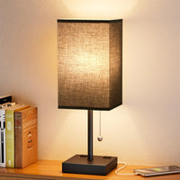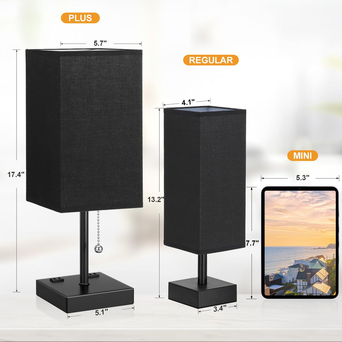 Aooshine Black Medium Table Lamp With Usb Ports - 3 Color Temperature Bedside Lamp For Bedroom, Pull Chain Control, Usb A And C