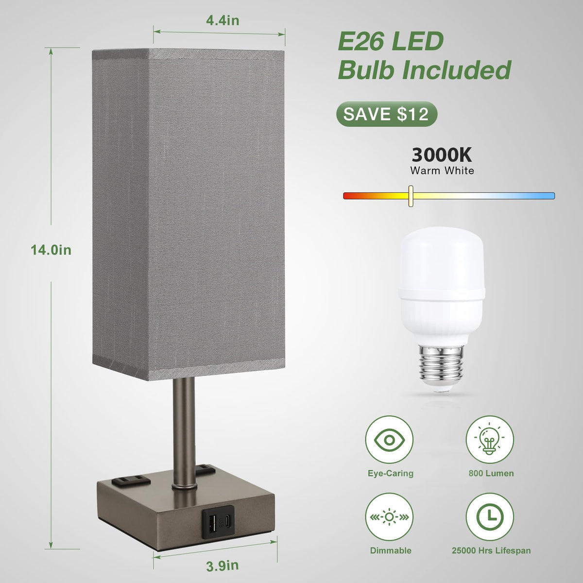 Aooshine set of 2 touch control 3-way dimmable nightstand lamps, modern design with upgrade function USB C, USB A ports and dual AC outlets. Multifunctional USB lamps with rotary switch are easy to assemble! Dual energy-saving LED bulbs are compatible with rotary switch, you can choose the ideal brightness for different use.The bedside lamp is a good choice for bedroom, living room, guest room!