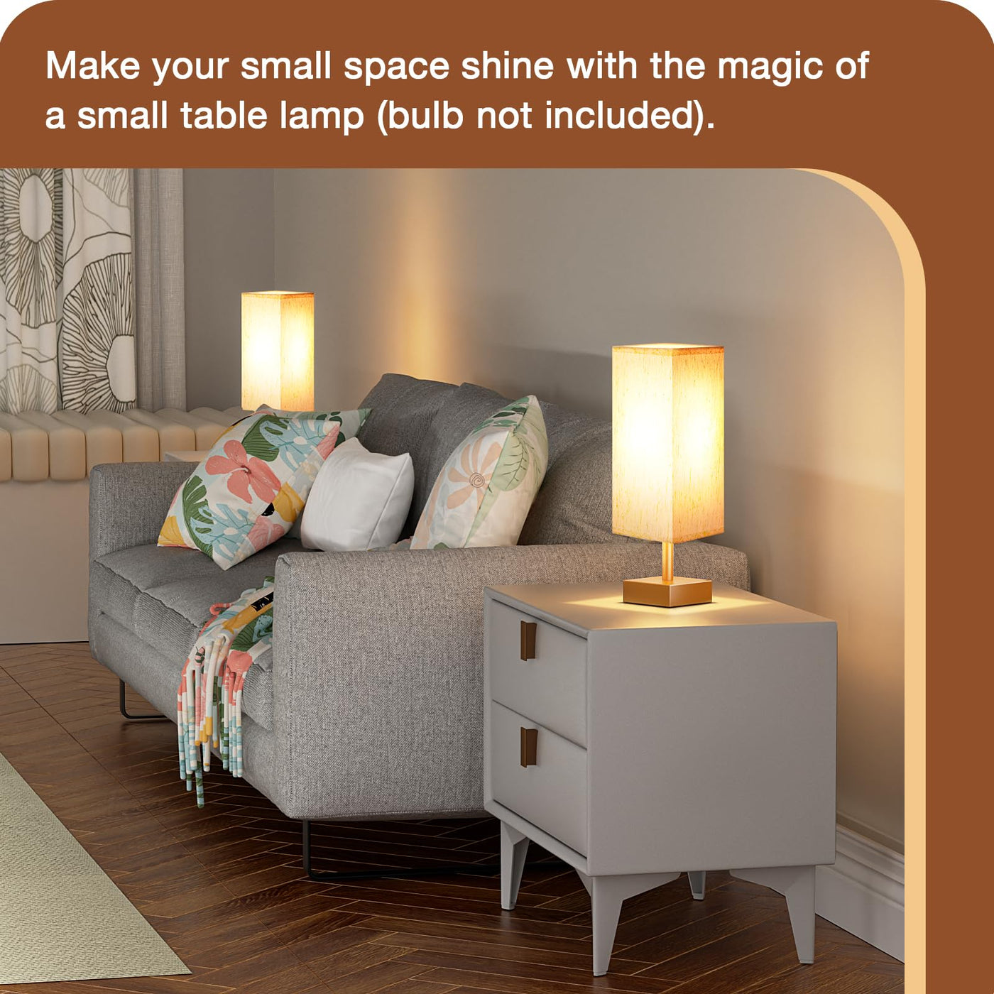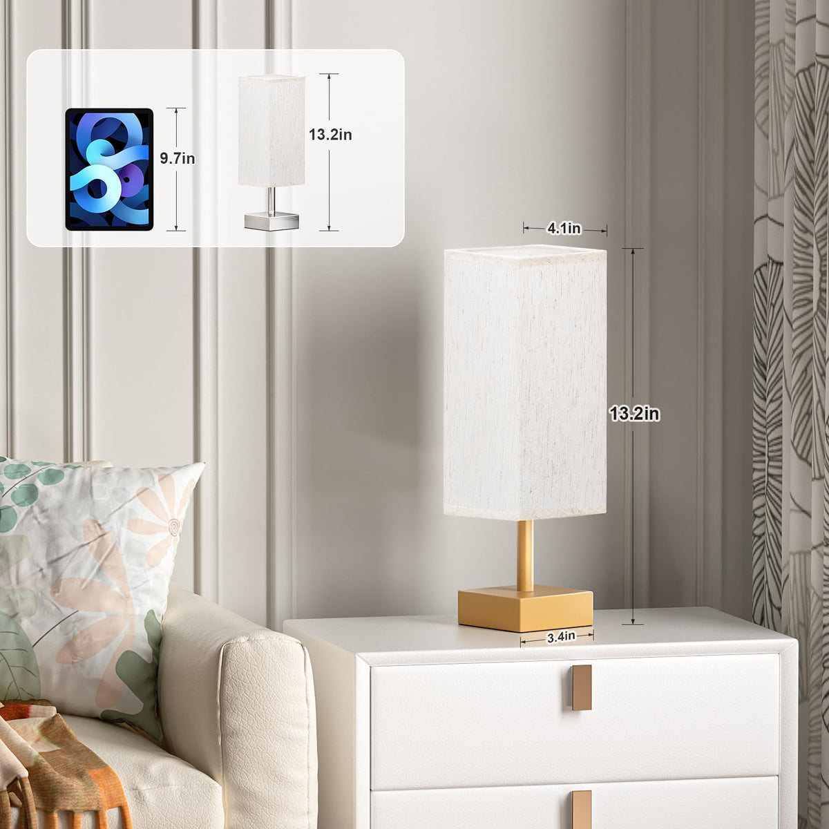 Aooshine Gold Small Table Lamp - Bedside Lamp For Bedroom, Minimalist Nightstand Lamp With Square Fabric Shade, Desk Lamp For Ki