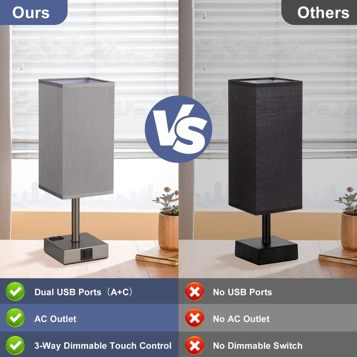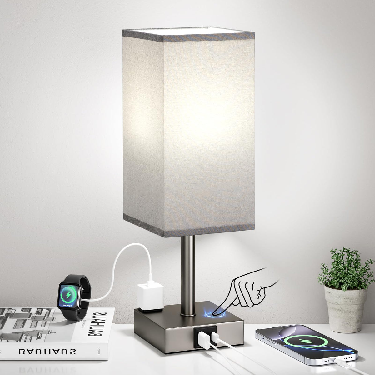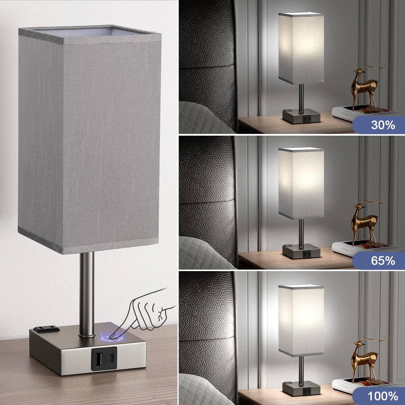 Aooshine Grey Bedside Lamp For Nightstand - Touch Table Lamp With Type C + A And Ac Outlet, Square Charging Lamps For Bedroom De
