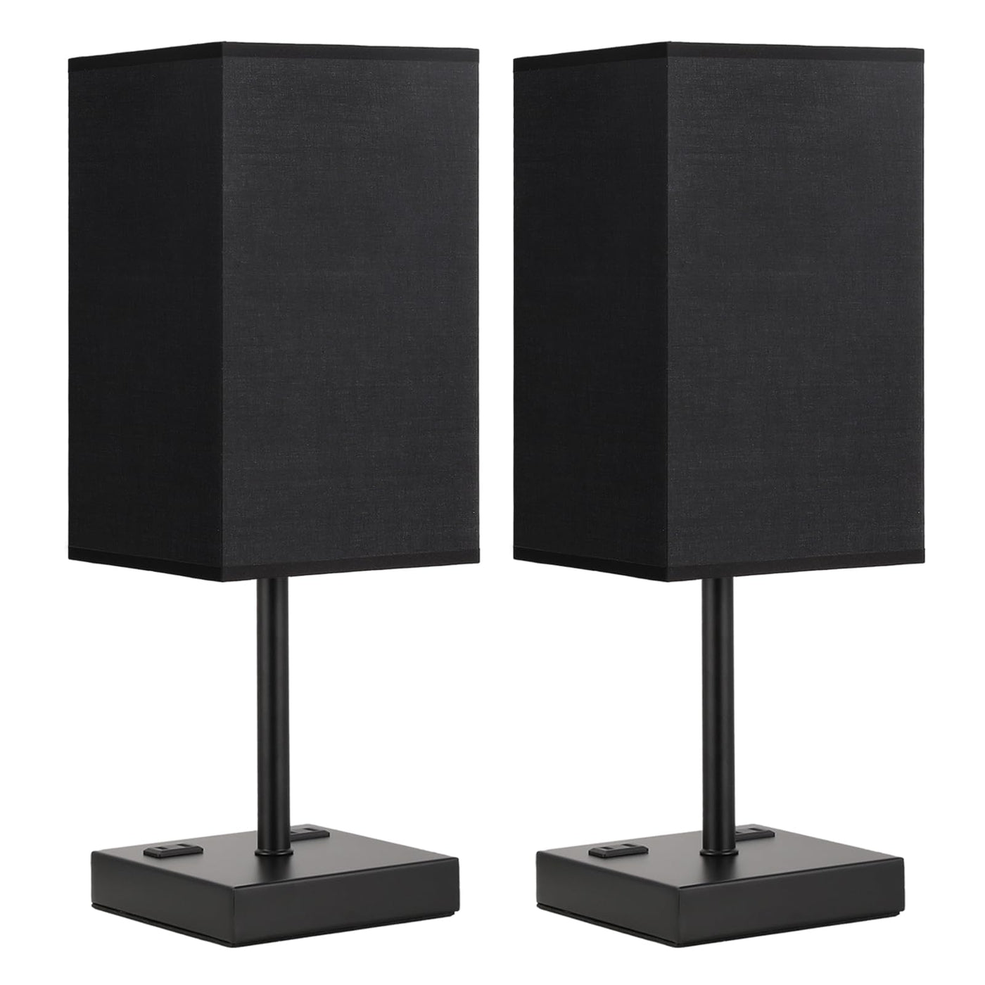 Aooshine Plus Set Of 2 Black Bedside Lamp For Nightstand