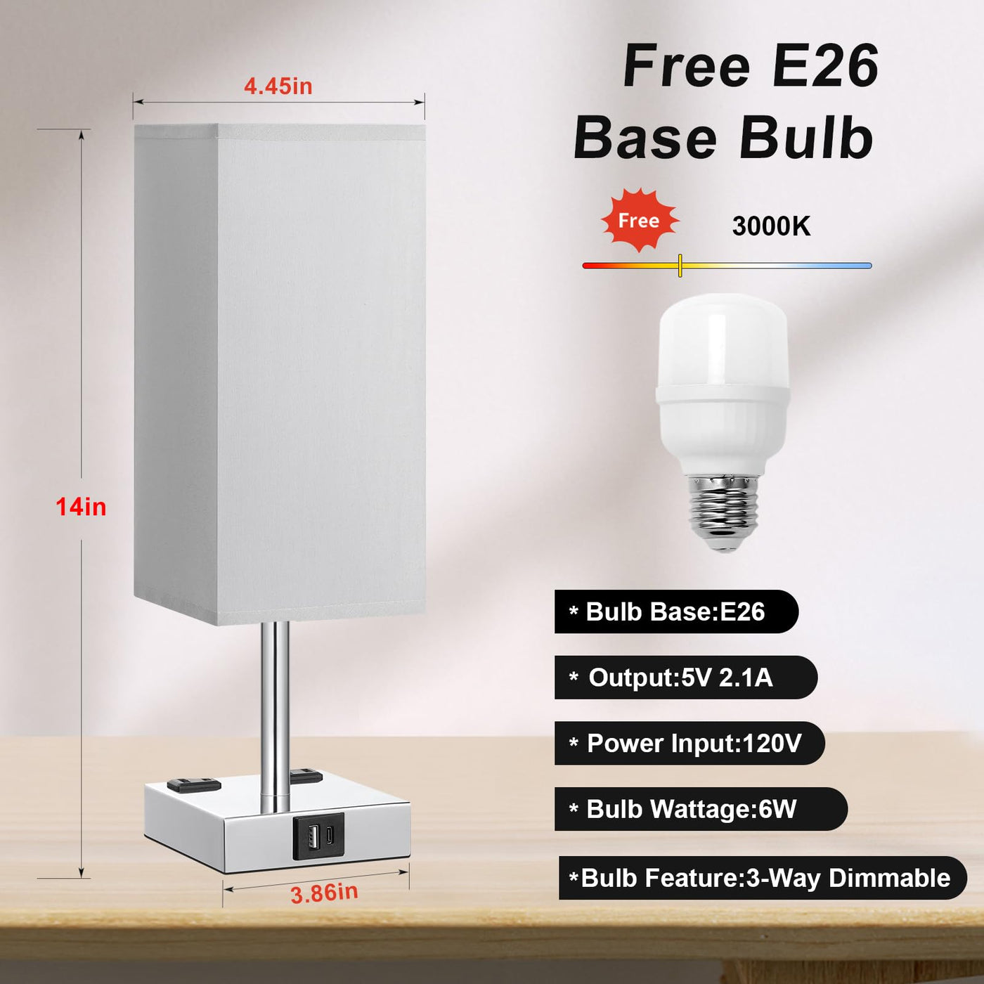 Q: Does the lamp come with a bulb, and what type is it?A: Yes, the lamp includes an E26 LED bulb that uses only 6 watts and is compatible with 120 volts, emitting warm white light at 3000K to reduce eye strain.