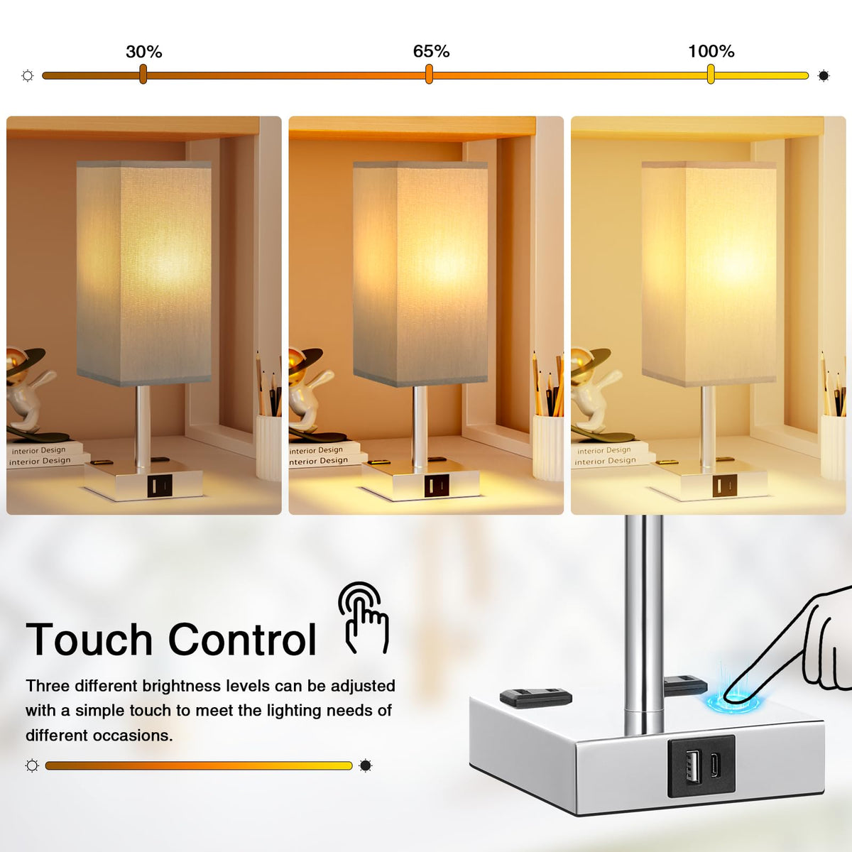 Aooshine Touch Bedside Table Lamp Set Of 2-3-Way Dimmable Night Lamp With Usb A + Type C Charging Ports And Two Ac Outlets, Smal