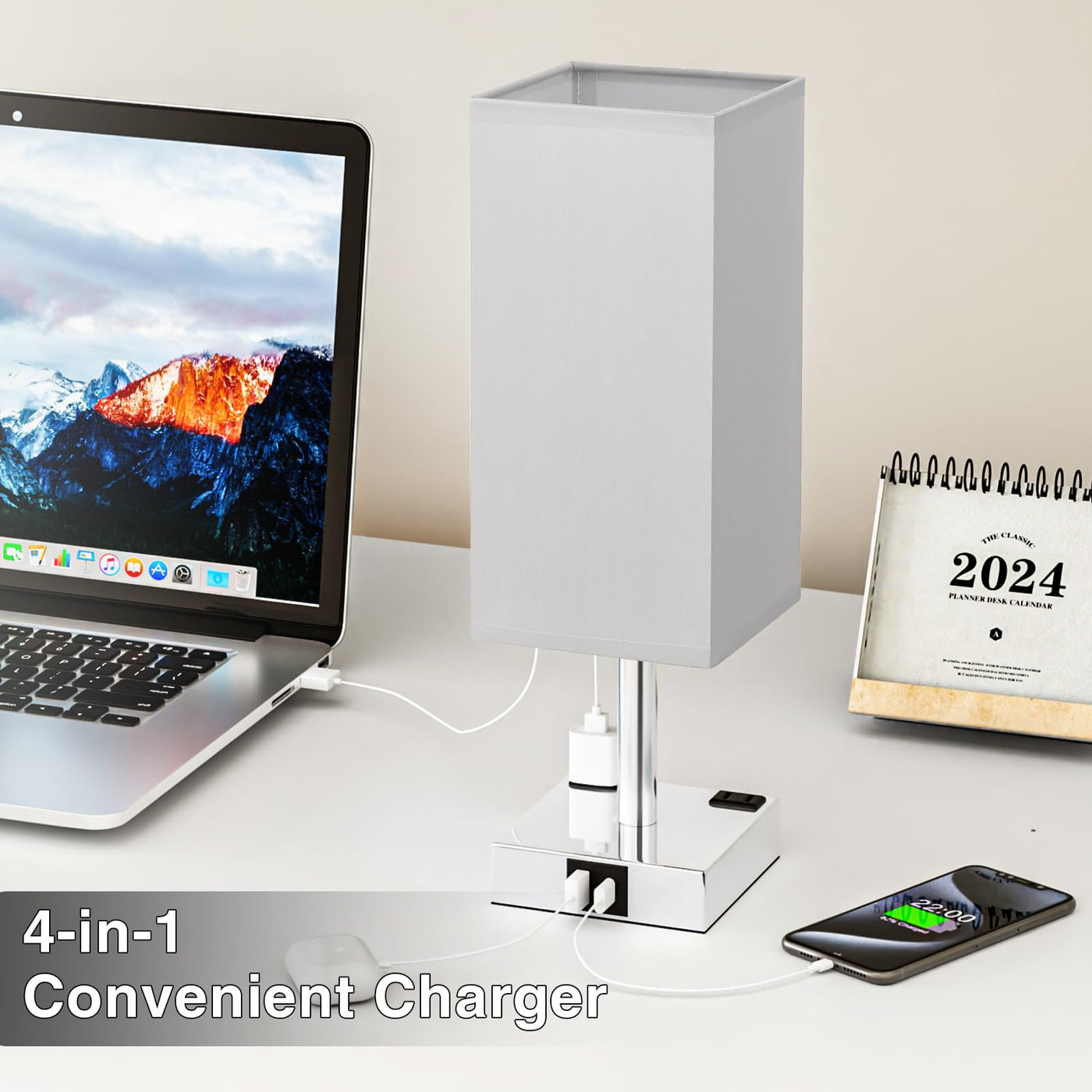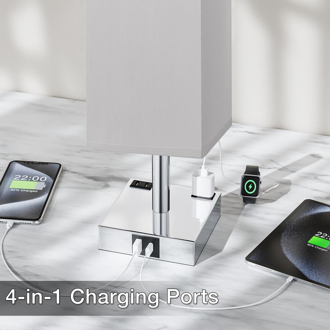 Bedside Table Lamp Set Of 2 Touch Control White/Silver