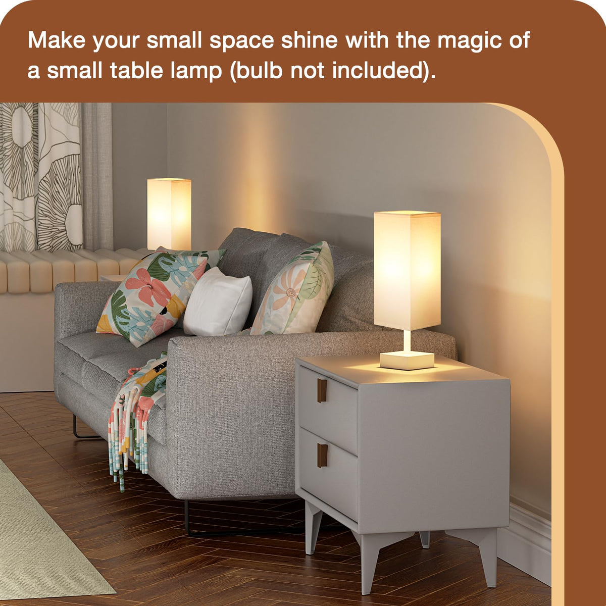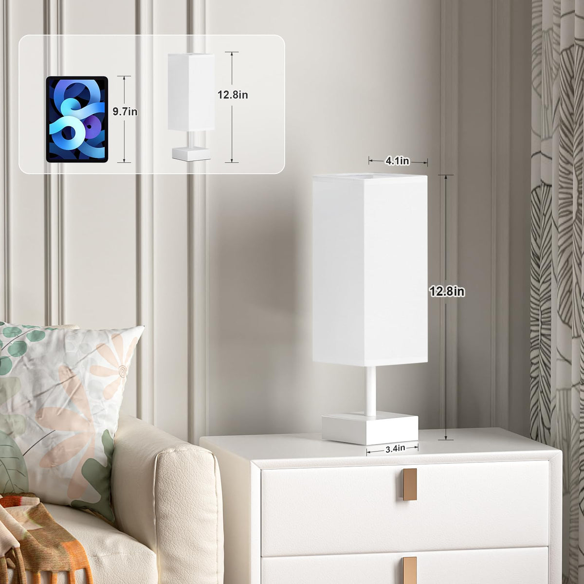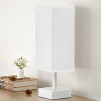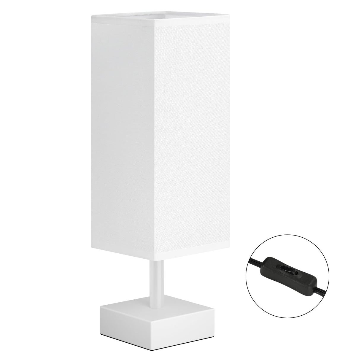 Aooshine White Small Table Lamp - Bedside Lamp For Bedroom, Minimalist Nightstand Lamp With Square Fabric Shade, Desk Lamp For K