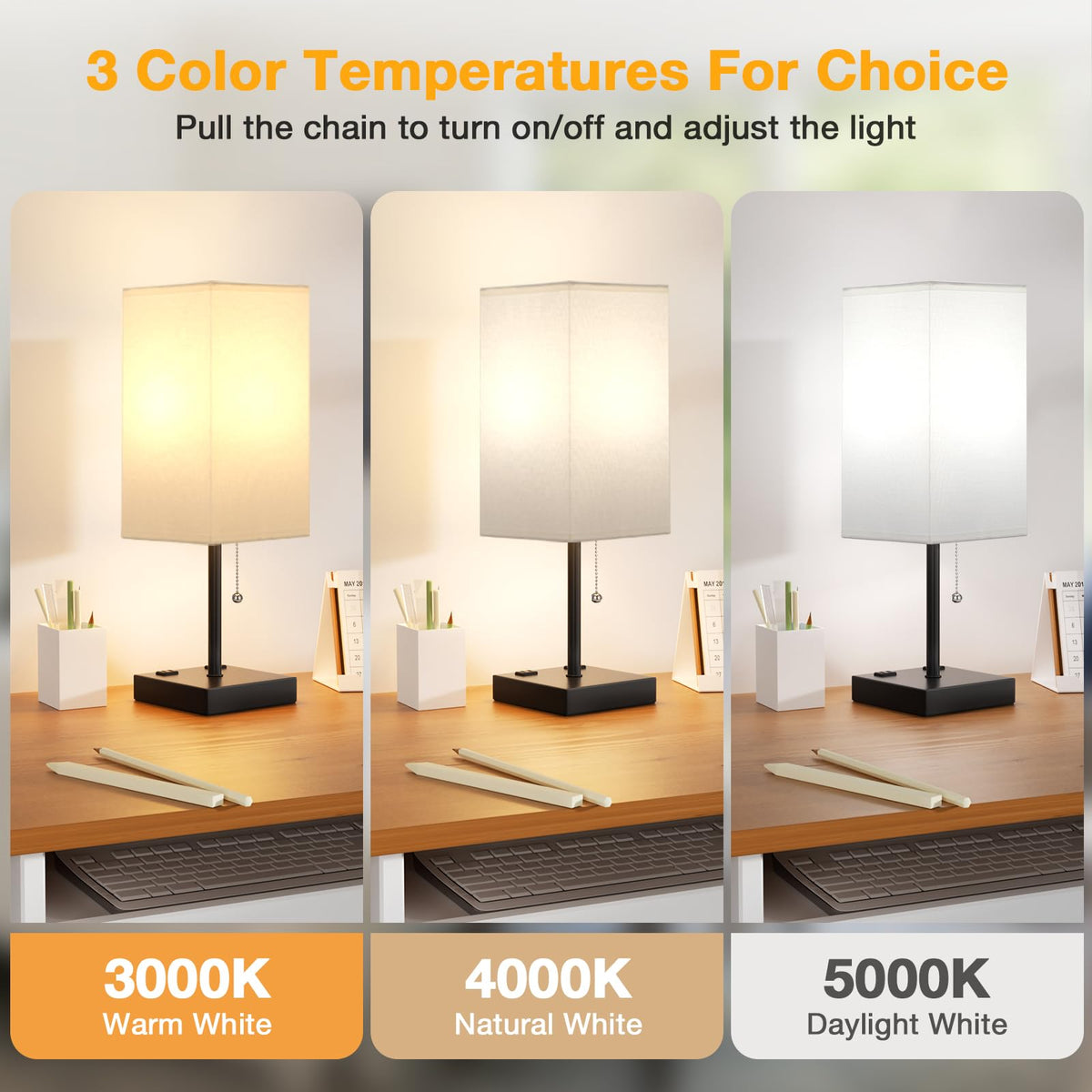 Aooshine White Table Lamp For Bedside - 3 Color Temperature 3000K 5000K 4000K Bedroom Lamp, Pull Chain Control, Usb A And C Ports, Ac Outlets, Bulb Included, Medium