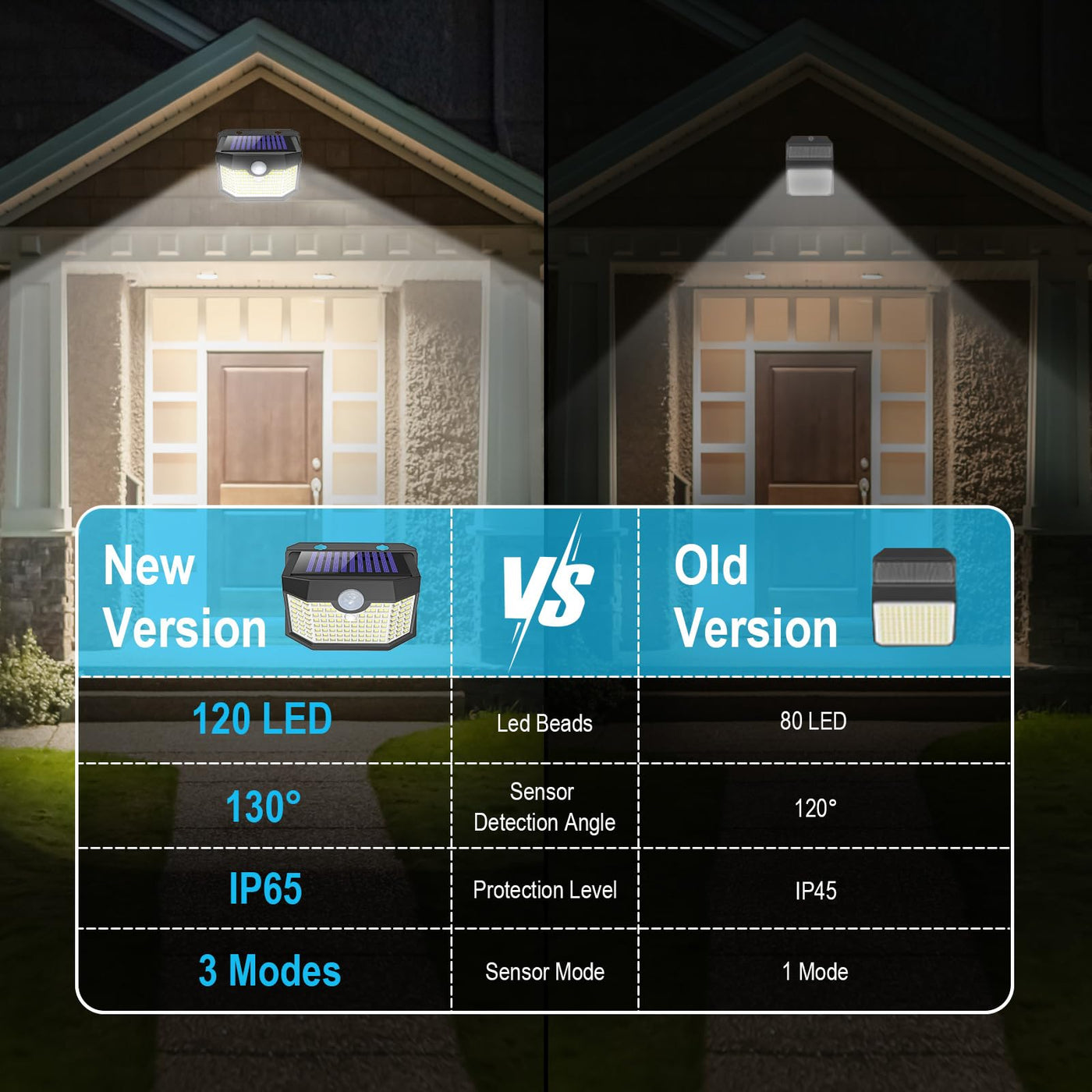Aootek Motion Sensor Light 2 Packs, Solar Lights Outdoor Waterproof With 3 Lighting Modes Solar Powered Wall Lights Outside For