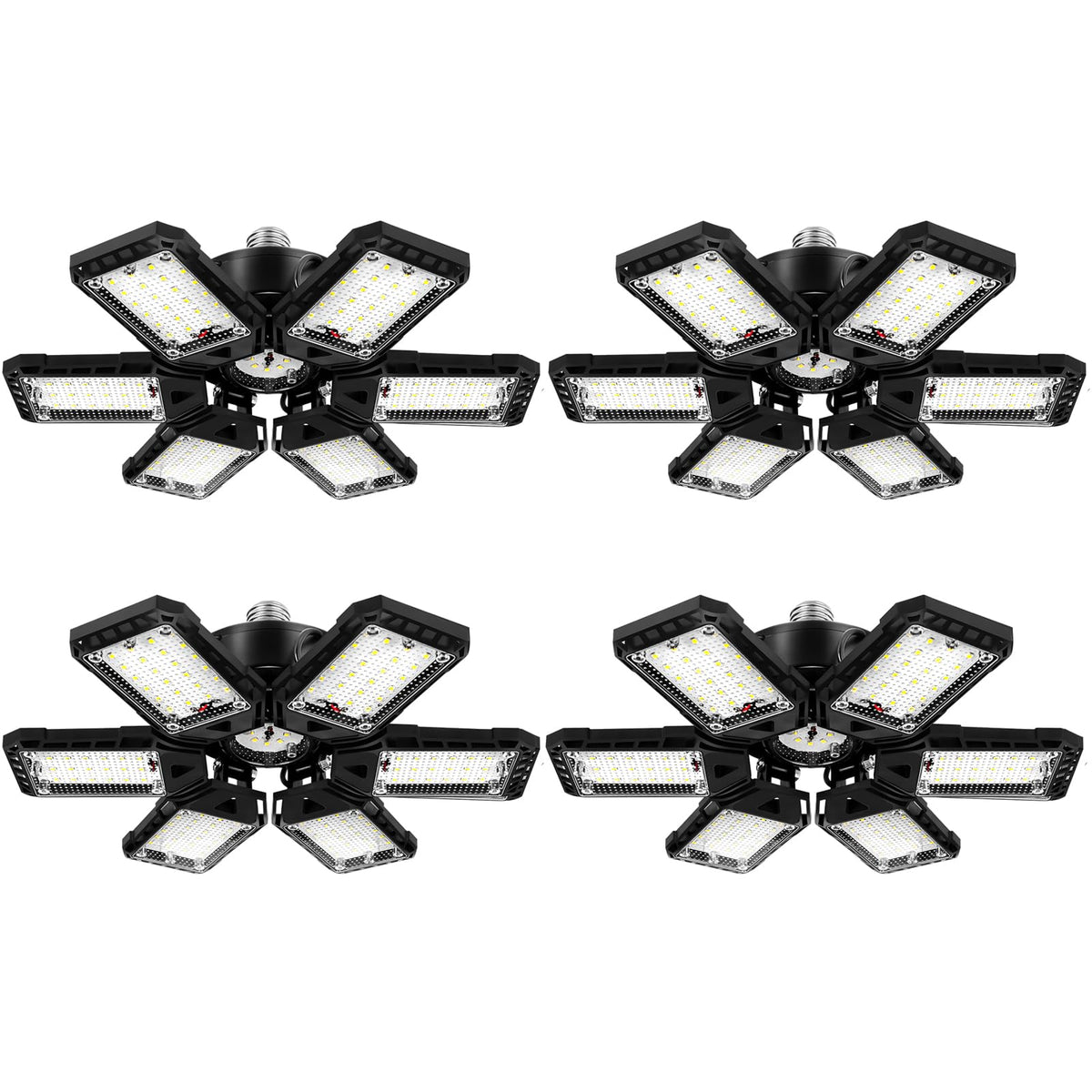 Aoretic Led Garage Lights 4 Pack -180W, 18000Lm 6500K Led Shop Light With 6+1 Deformable Panels, Basement Barn Light Garage Ceil