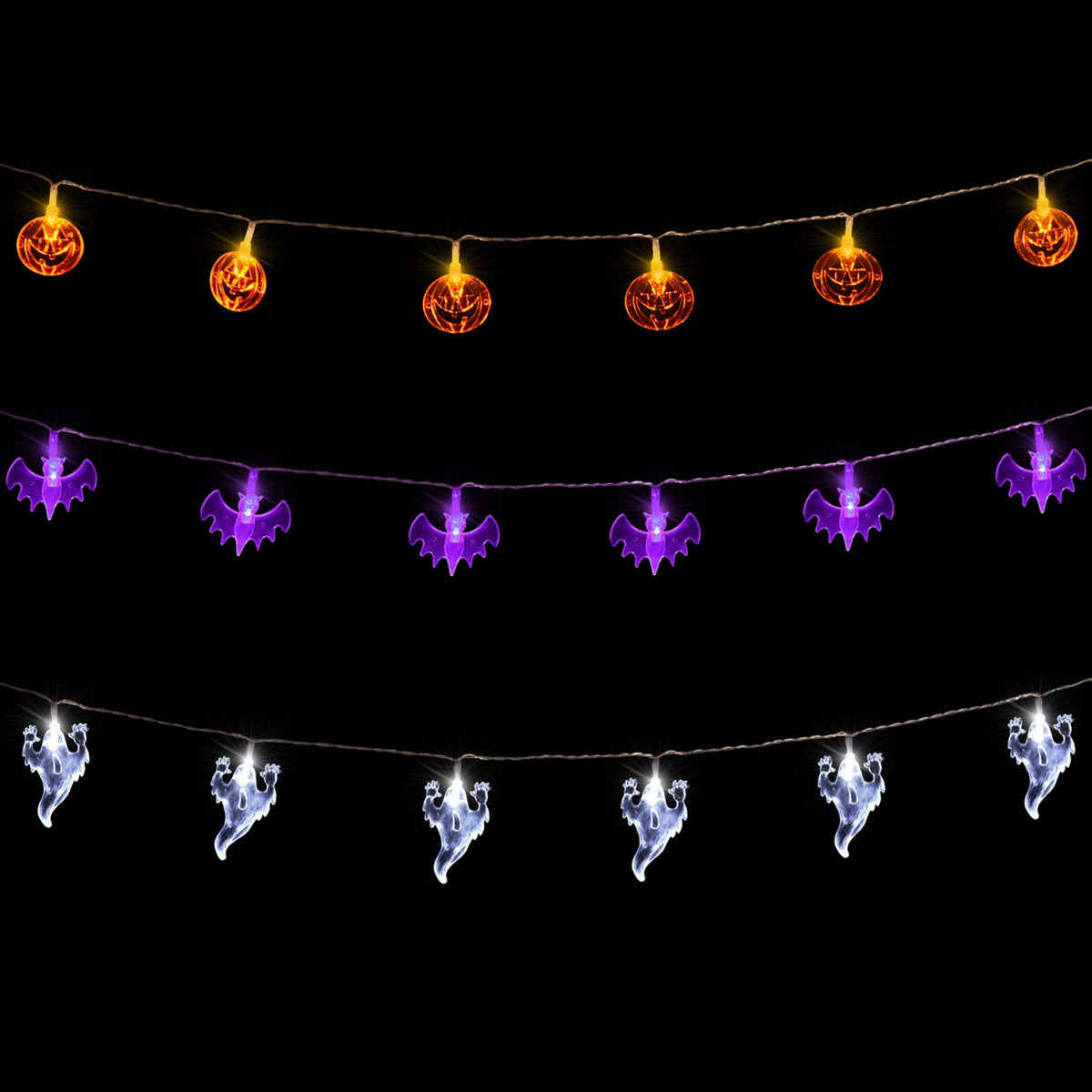 Aostar Set Of 3 Halloween Lights (20 Leds Orange Pumpkins, Purple Bats, White Ghosts), Battery Operated String Lights For Halloween Decorations Outdoor & Indoor