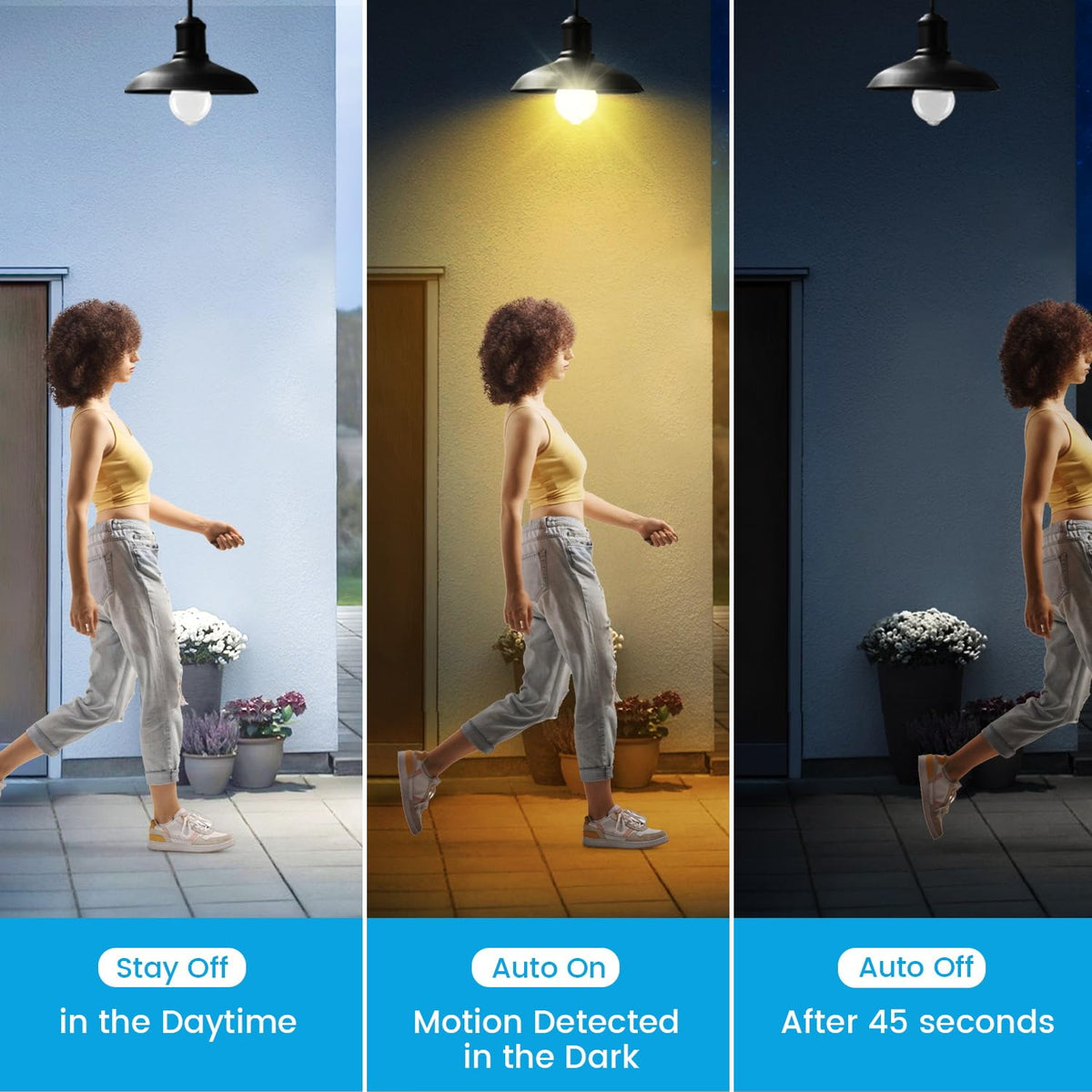 Aovpex Motion Sensor Light Bulbs, 100W Equivalent Motion Activated Security Light Bulb, Dusk To Dawn, E26 A19 Led Bulb, Auto On Off, Indoor Outdoor, 2700K 2 Pack