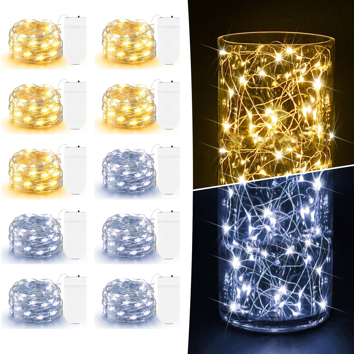 Aozope 10 Pack Fairy Lights, 7Ft 20 Led Twinkle Copper Wire String Lights, Warm & Cool White