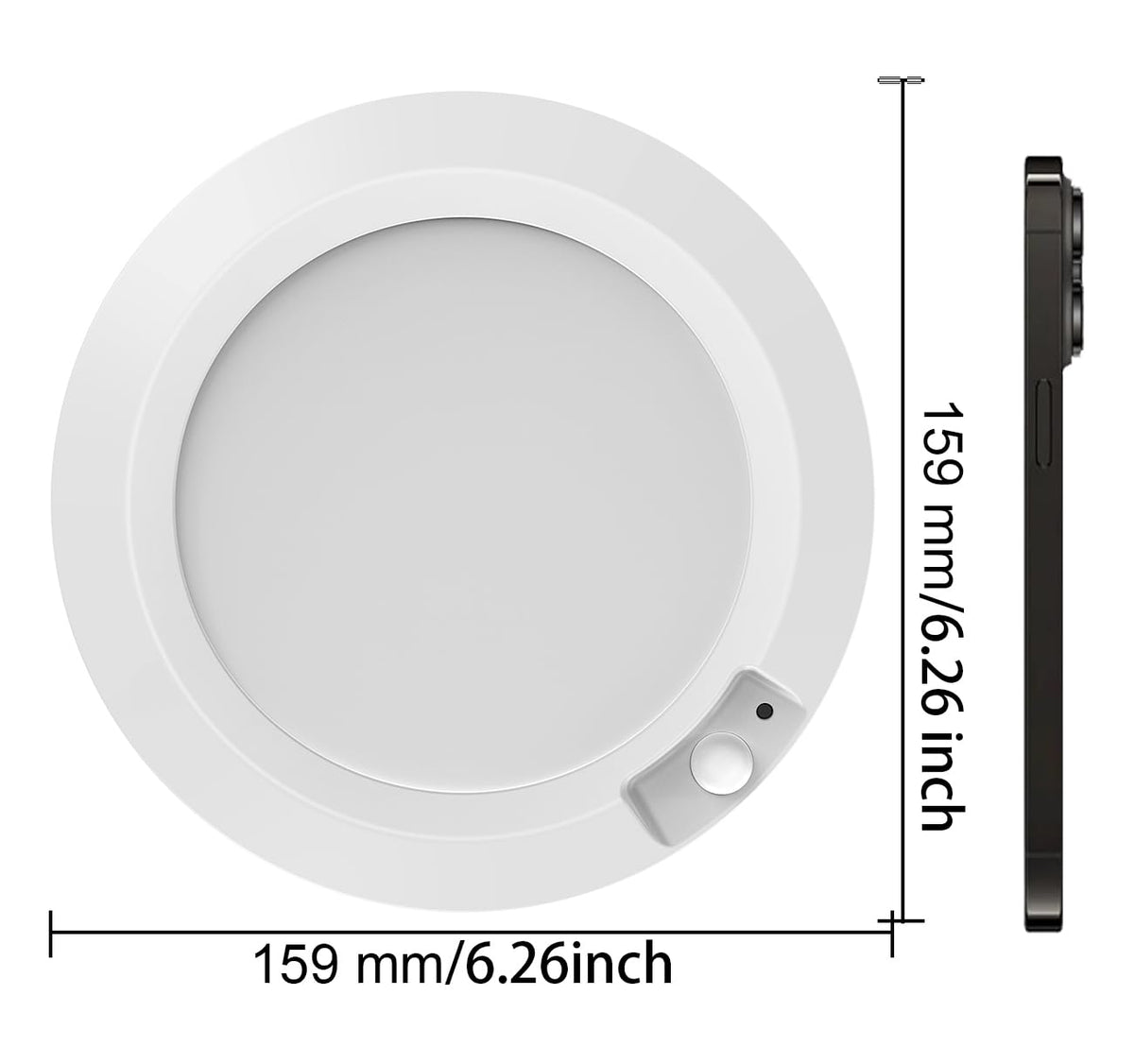 Q: What is the light color temperature of the APCENS ceiling light?A: The APCENS ceiling light emits a bright 6000K soft white light. Its new side-lit design helps to evenly distribute the light, making it gentle on the eyes, which is perfect for nighttime use.