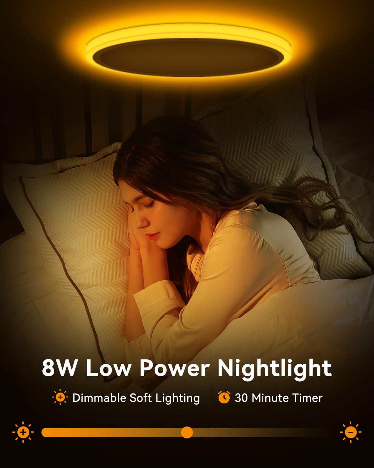 Aphyni 15.8 Inch Led Flush Mount Ceiling Light With Night Light, 36W 3600Lm 3000K-6500K Dimmable Ceiling Light Fixture For Bedro