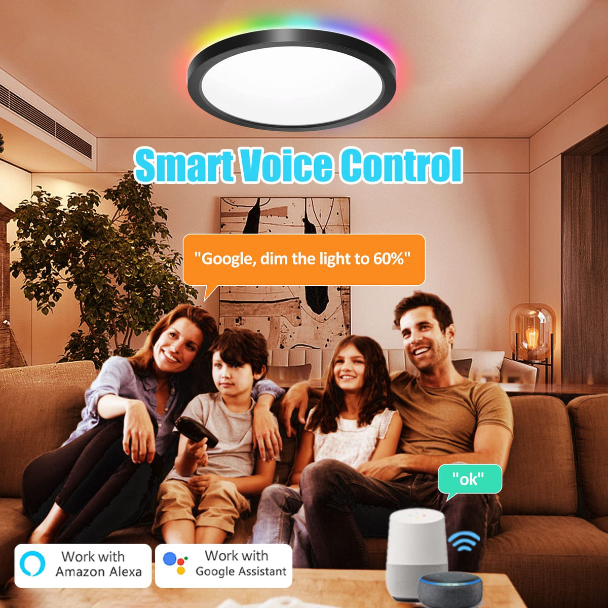 Aphyni Led Smart Ceiling Light Flush Mount, Compatible with Alexa Google Home, 12 Inch Low Profile Ceiling Light Fixture, 24W Di