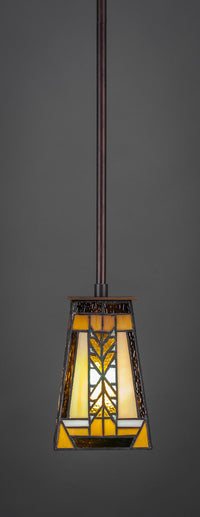 Q: What is the size of the glass used in the Apollo 1 Light Mini Pendant?A: The pendant features a 5-inch square Santa Cruz art glass, which adds a unique touch to its design.