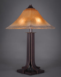 577-DG-650 Apollo Table Lamp Shown In Dark Granite Finish With Square Amber Crystal Glass. Rated for: Dry location. Light Bulb Data: 2 Medium 75 watt. Bulb included: No.