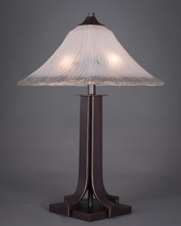 577-DG-651 Apollo Table Lamp Shown In Dark Granite Finish With Square Frosted Crystal Glass. Rated for: Dry location. Light Bulb Data: 2 Medium 75 watt. Bulb included: No.
