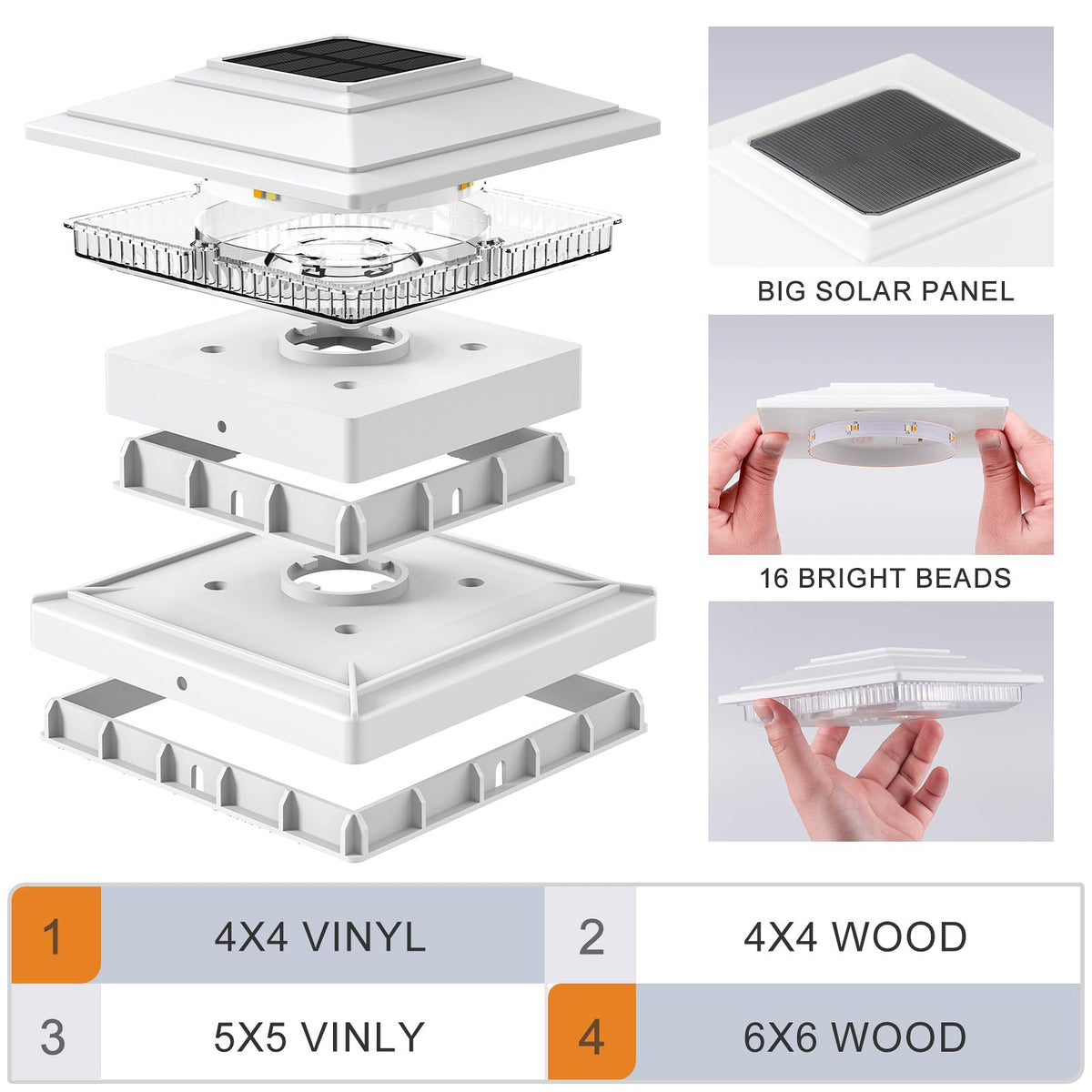 Aponuo 4X4 Post Solar Lights,2-Mode Ip64 Waterproof 16 Bright Leds Outdoor Lighting For Deck,Fence,Patio,Garden,Yard,Long-Lastin