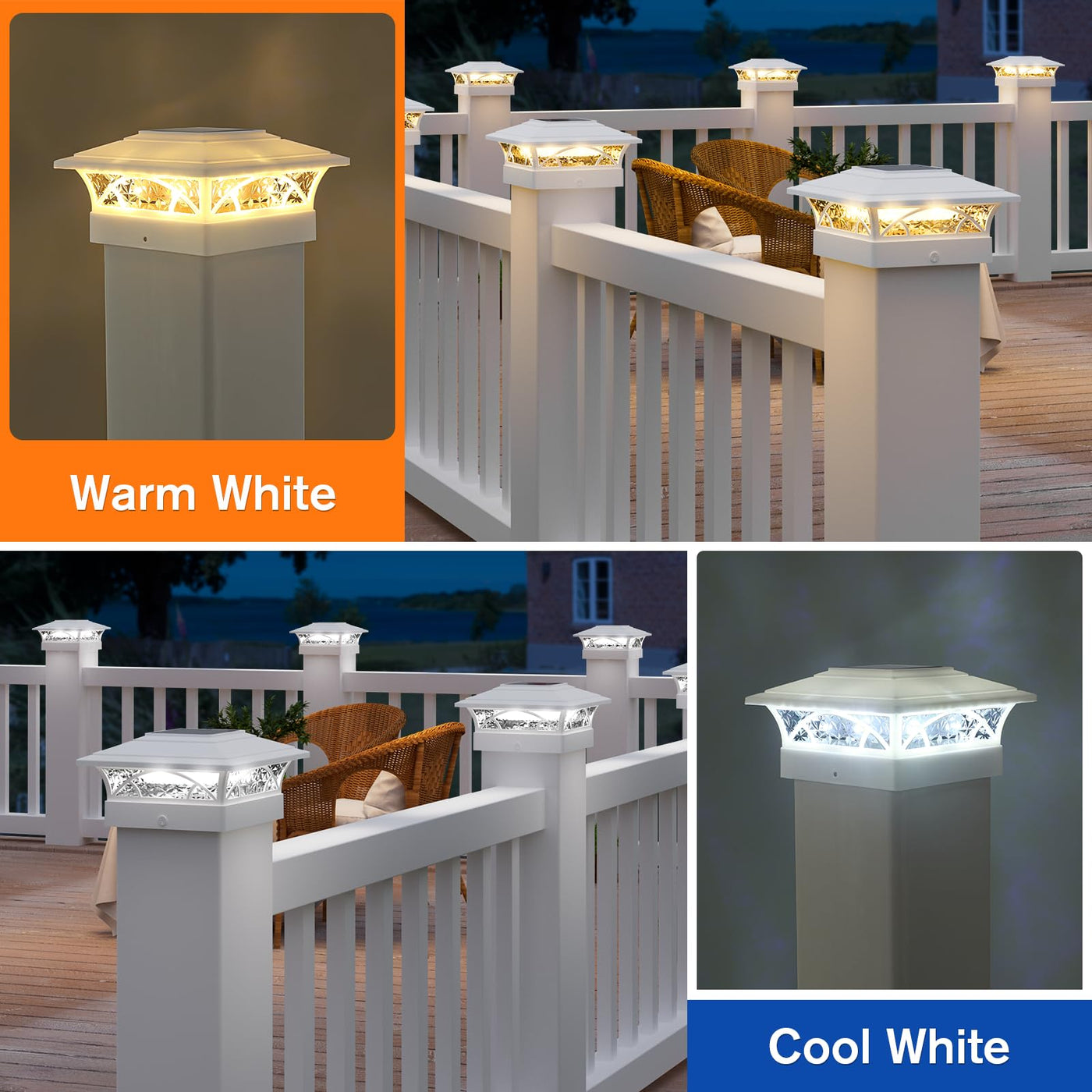 Aponuo Fence Post Solar Lights,Solar Post Cap Lights,2-Mode Solar Post Lights Outdoor Waterproof Garden Patio Yard Lights For Fence Deck 4X4 5X5 6X6,Auto On/Off,Easy To Instal,White 12 Pack