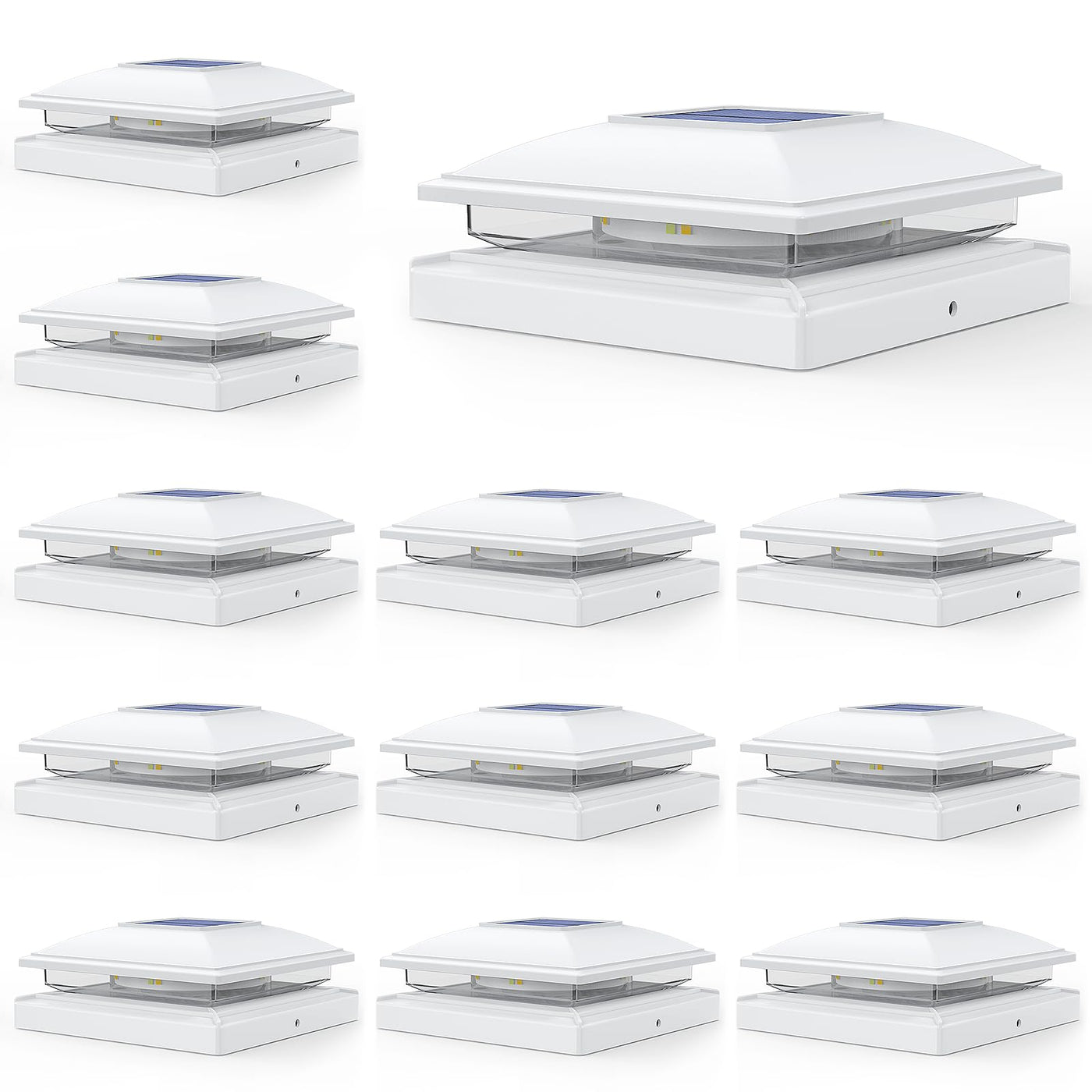Aponuo Solar Post Cap Lights, 12 Pack 2 Modes (Warm/White Light) Outdoor Waterproof 4X4 Post Solar Lights, Solar Powered Garden
