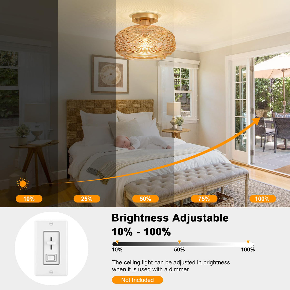Newly upgraded 11 Inch large size ceiling light: 11.03'' L x 11.03'' W x 7.28'' H. This larger size vintage Ceiling light than other offers in the market, is more suitable for decoration and lighting for wider areas. This light fixture has a hand-blown glass shade and a black metal base, combining simple, retro, and modern styles. Clean lines and understated elegance make it suitable for various interior styles, from contemporary to transitional. Creating a romantic atmosphere in your home