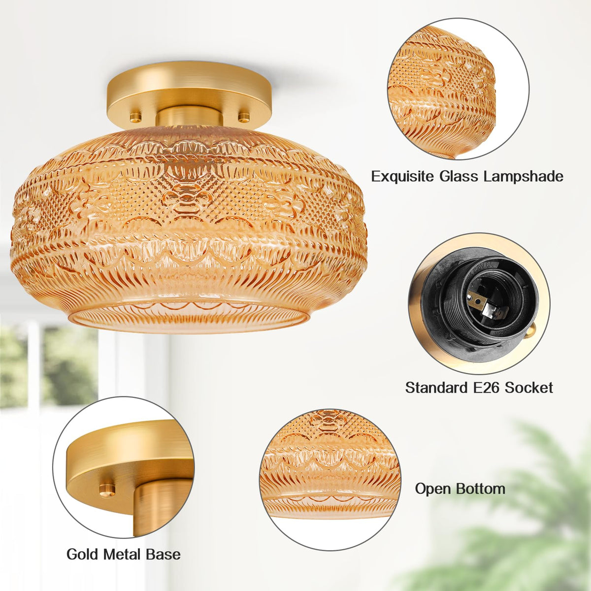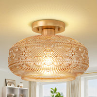 Apoto 11'' Large Semi Flush Mount Ceiling Light,Amber Globe Glass Ceiling Light Fixture,Vintage Hallway Light Fixture Ceiling,Cl