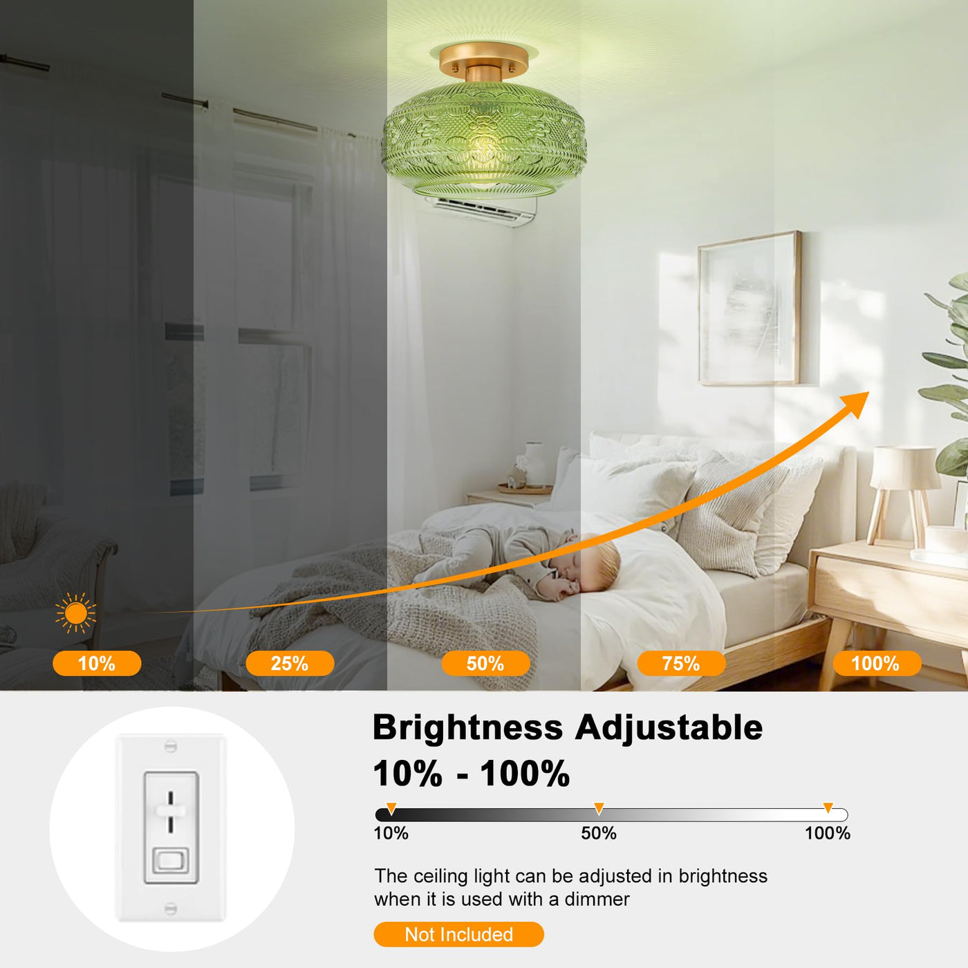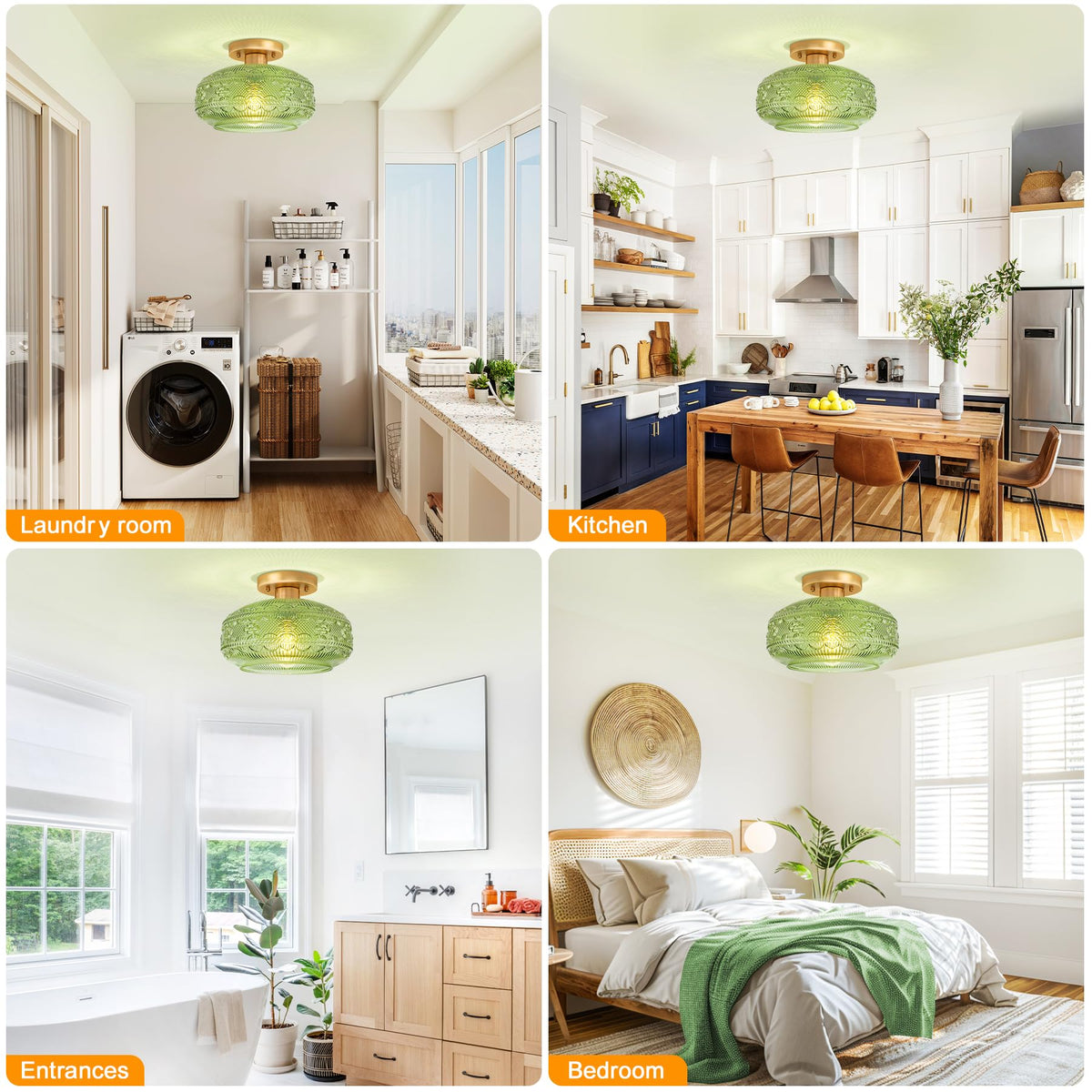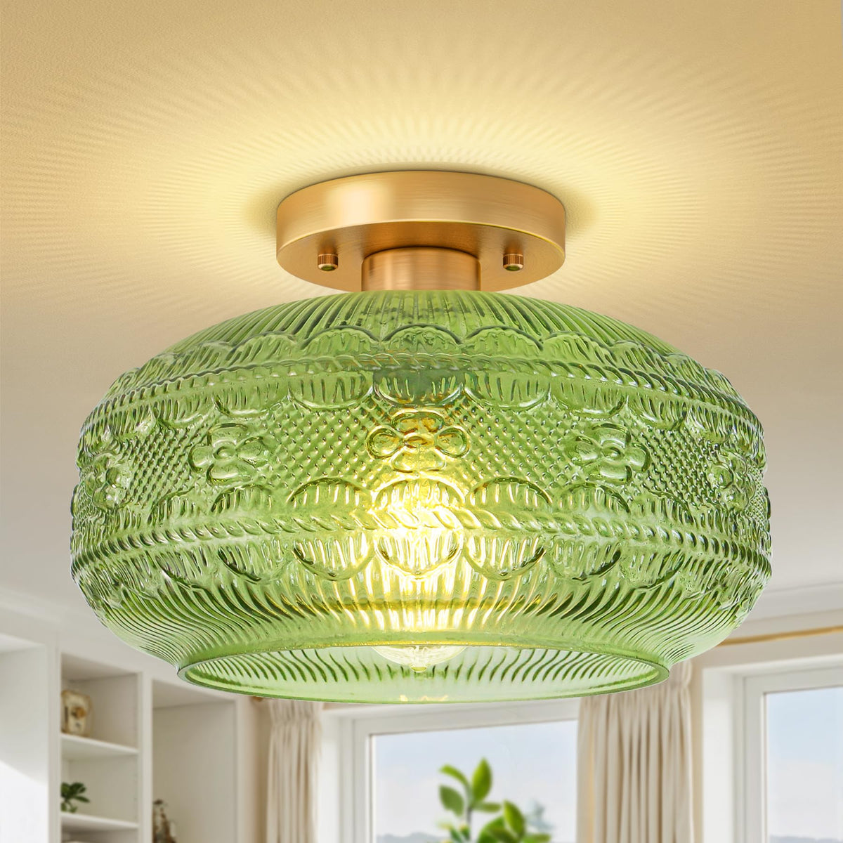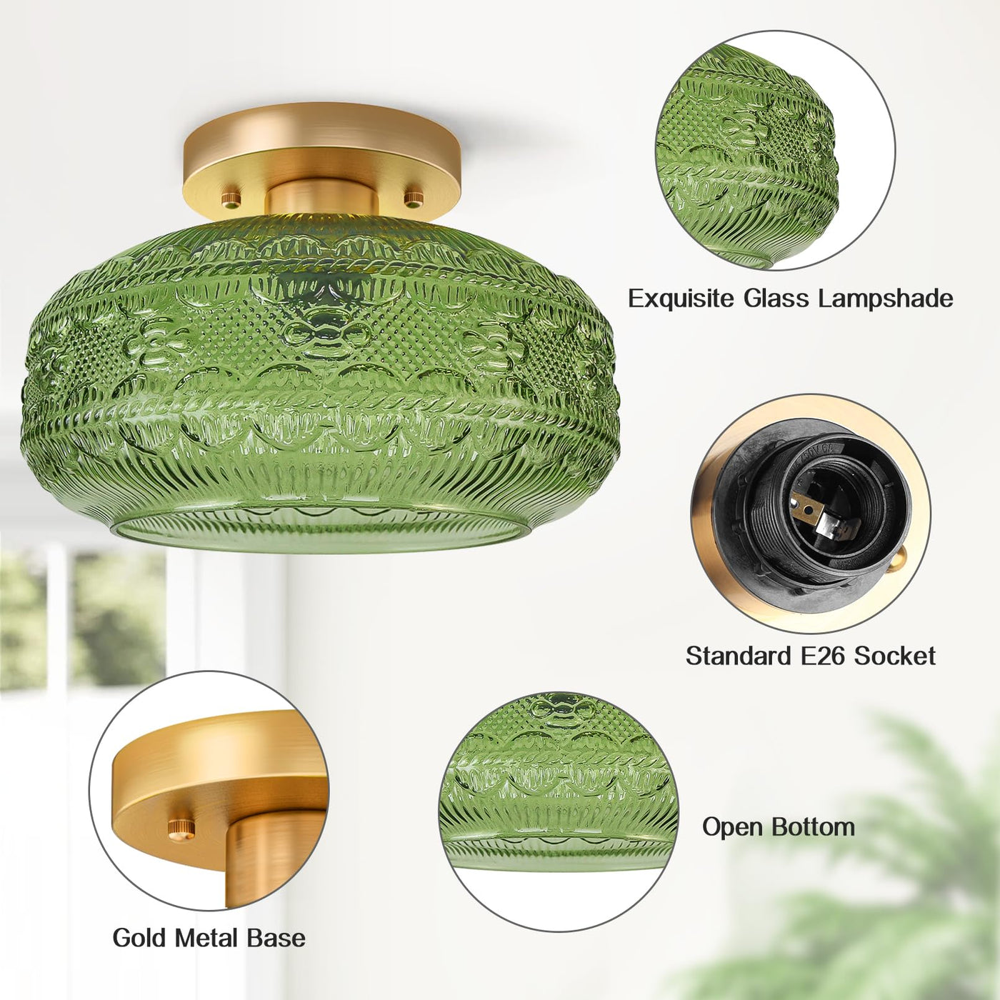 Apoto 11'' Large Semi Flush Mount Ceiling Light,Green Globe Glass Ceiling Light Fixture,Vintage Hallway Light Fixture Ceiling,Cl