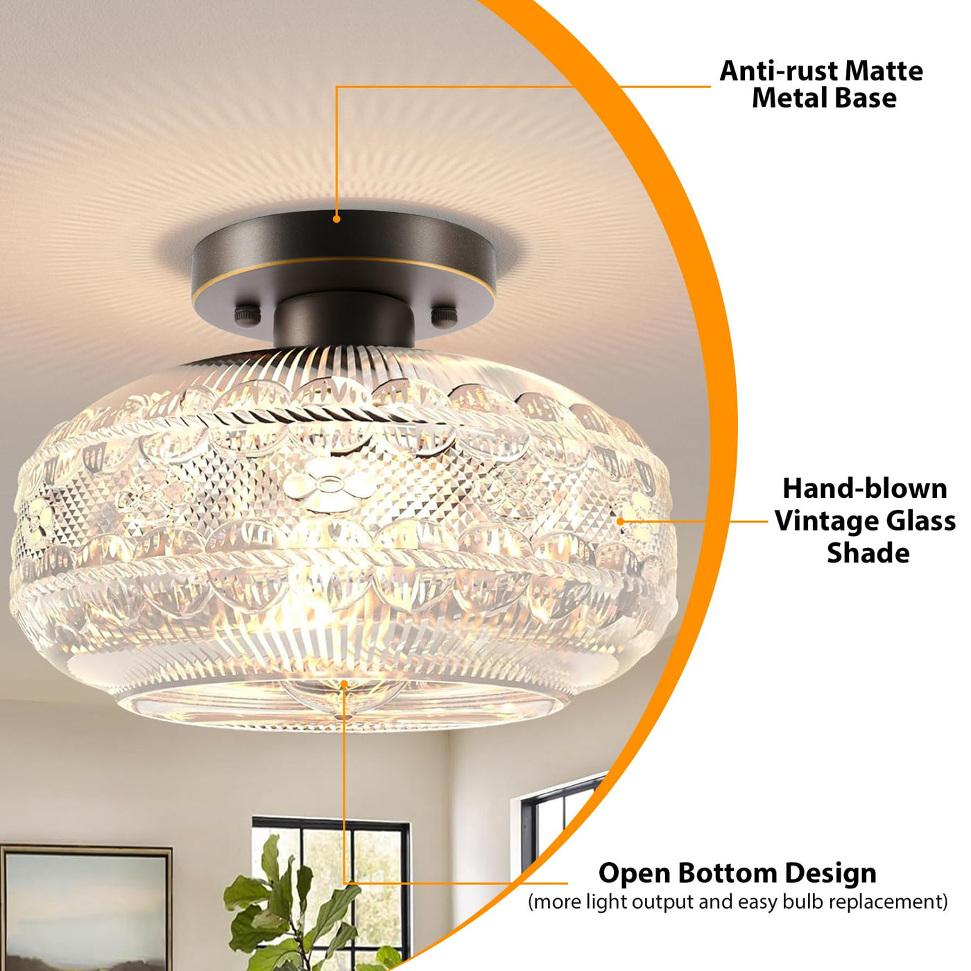 Apoto 11'' Large Semi Flush Mount Ceiling Light,Oil Rubbed Bronze Globe Glass Light Fixture,Vintage Hallway Light Fixture,Close