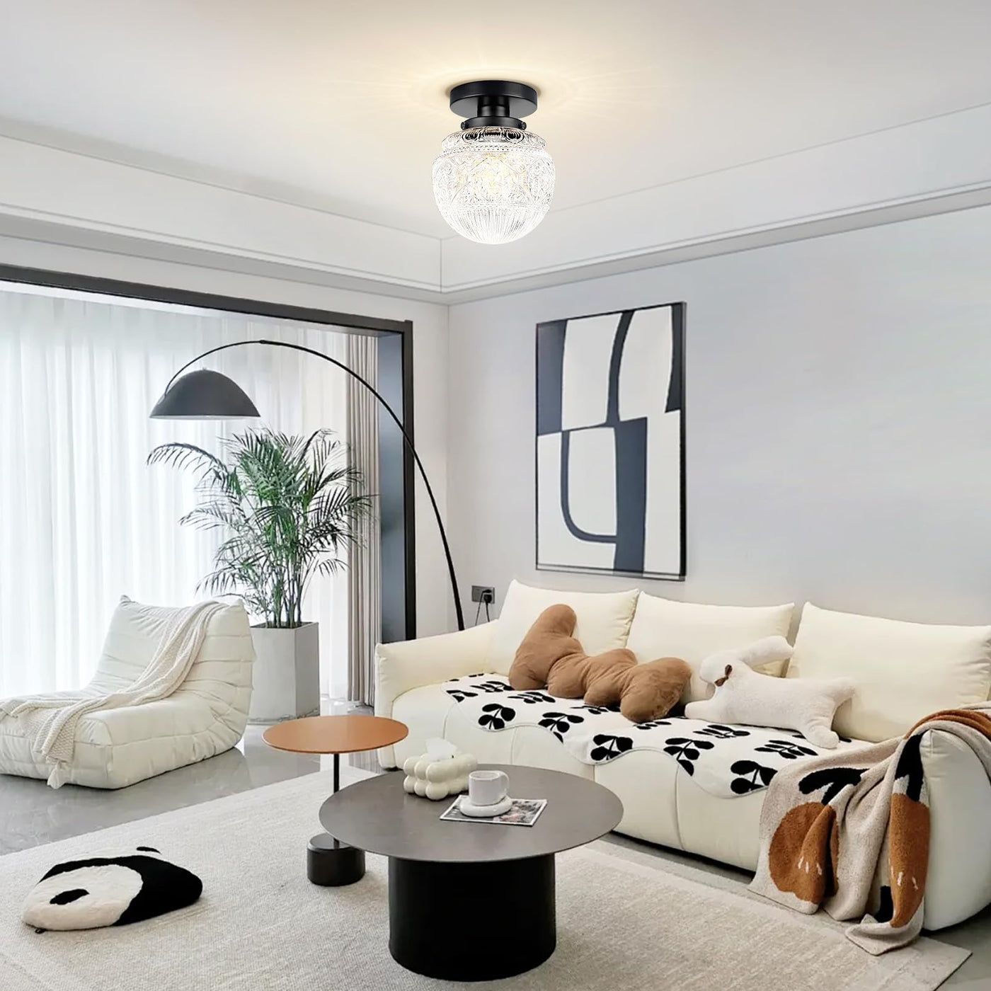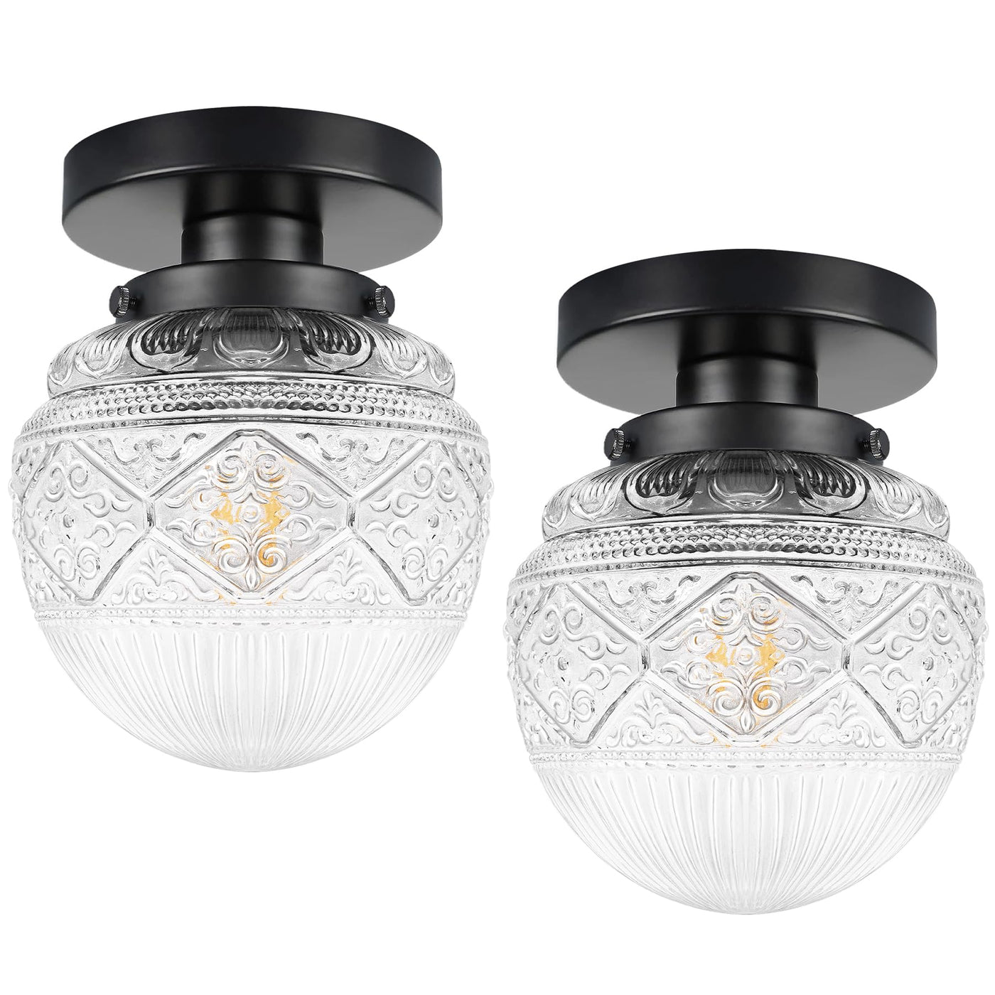 Apoto 2 Pack Semi Flush Mount Ceiling Light Fixture Black,Small Hallway Light Fixture Ceiling,Vintage Globe Glass Close To Ceiling Light,Chandelier Light Fixtures Ceiling Mount For Kitchen Hall Closet