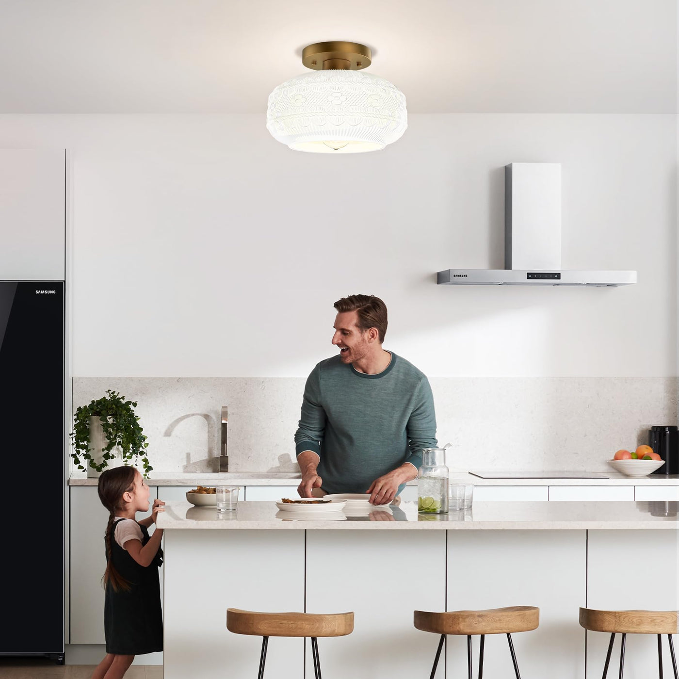 Apoto Gold Semi Flush Mount Ceiling Light Fixture,Globe Glass Hallway Lights Fixture Ceiling Light With Milk Glass,Vintage Kitch