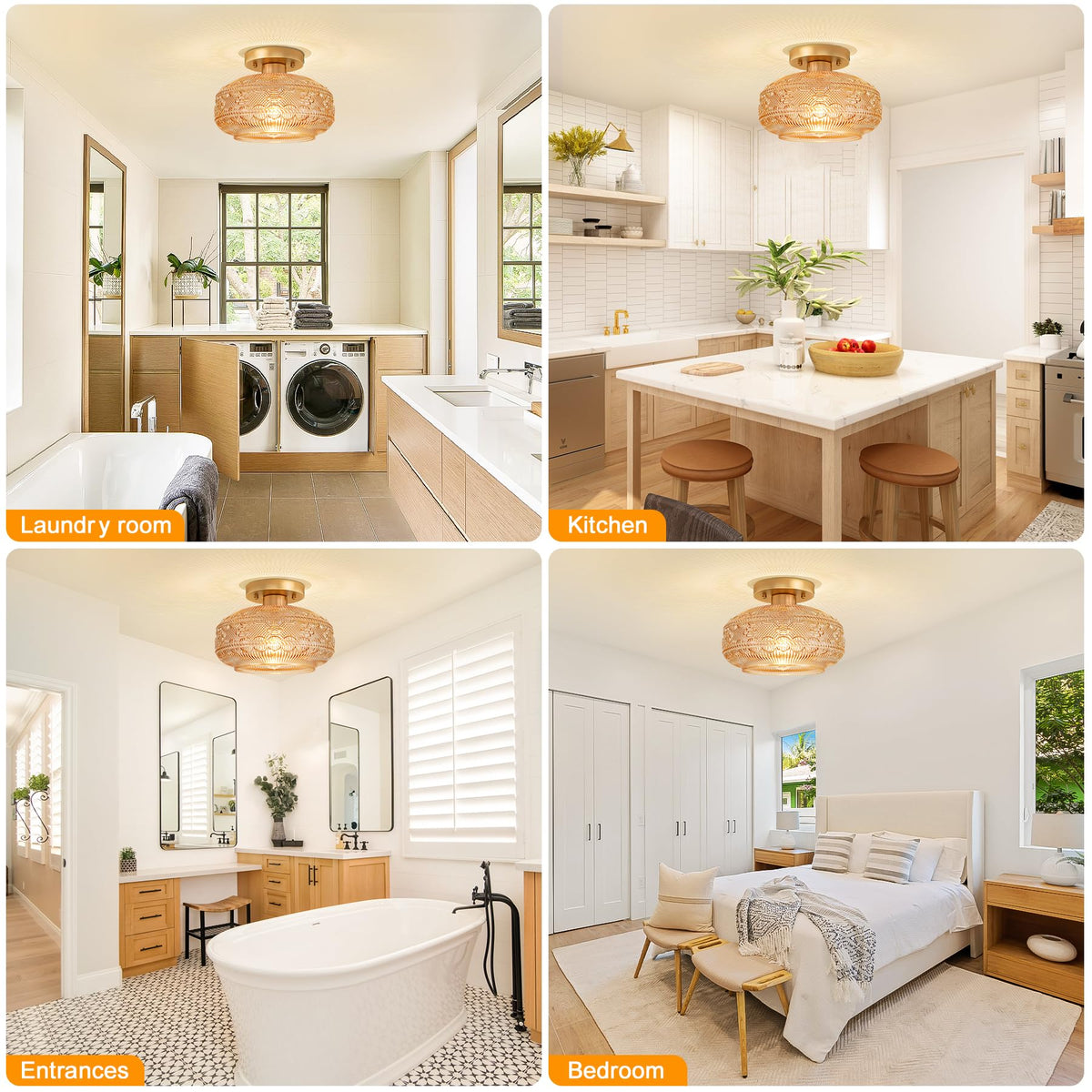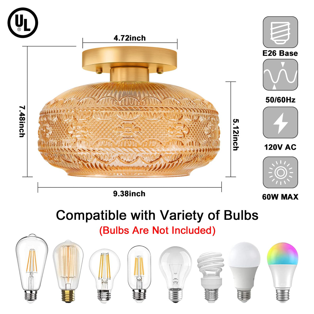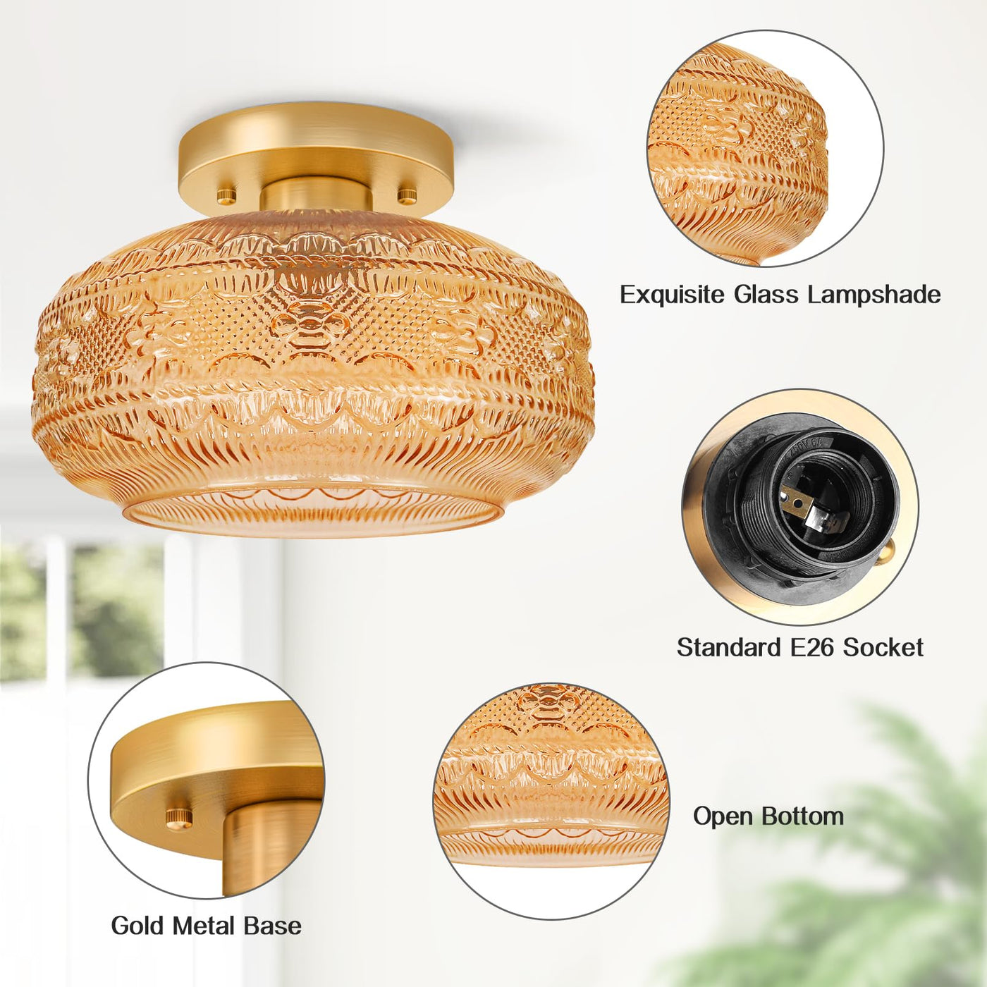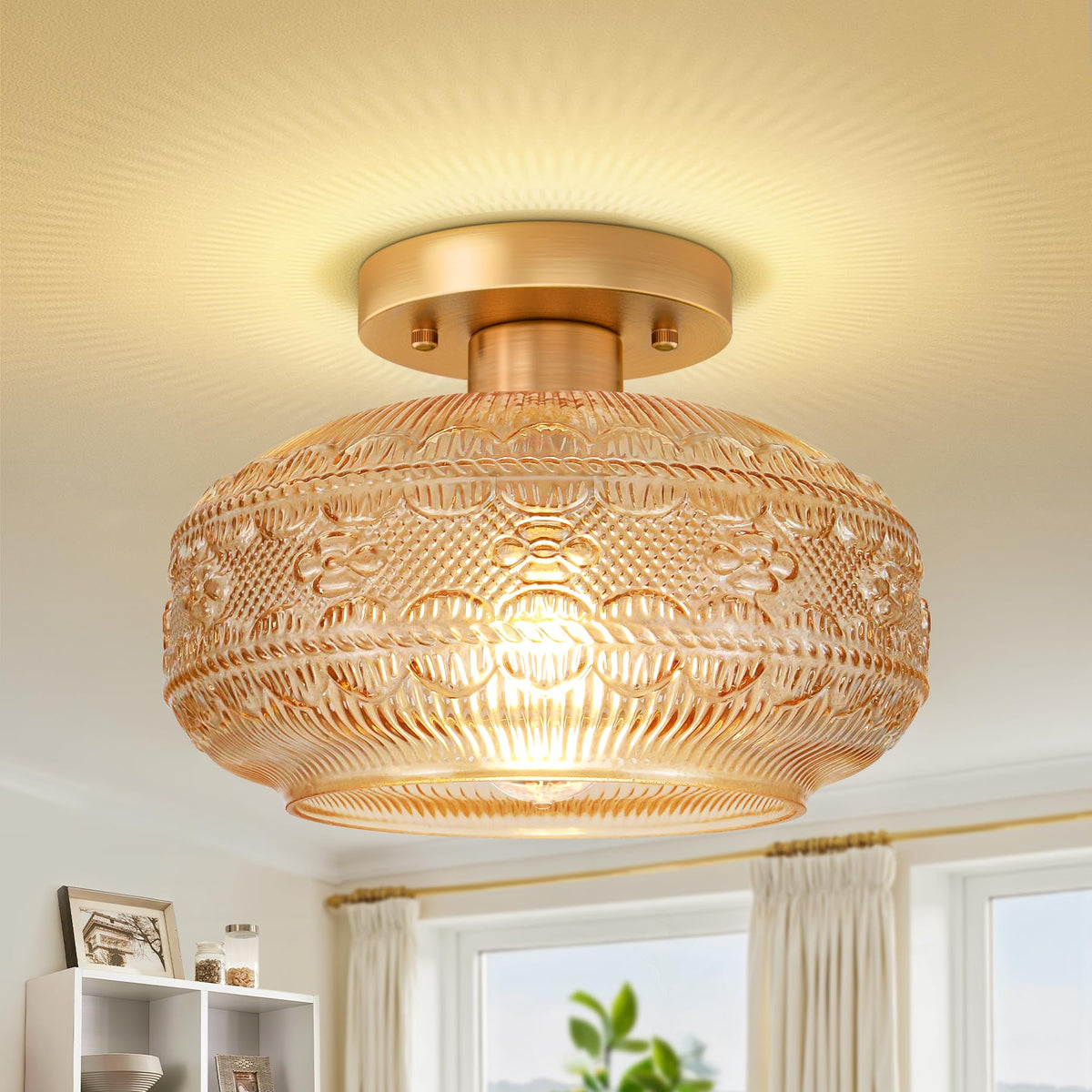 Apoto Semi Flush Mount Ceiling Light Fixture Amber,Vintage Hallway Light Fixture Ceiling,Globe Glass Light Fixtures Ceiling Moun