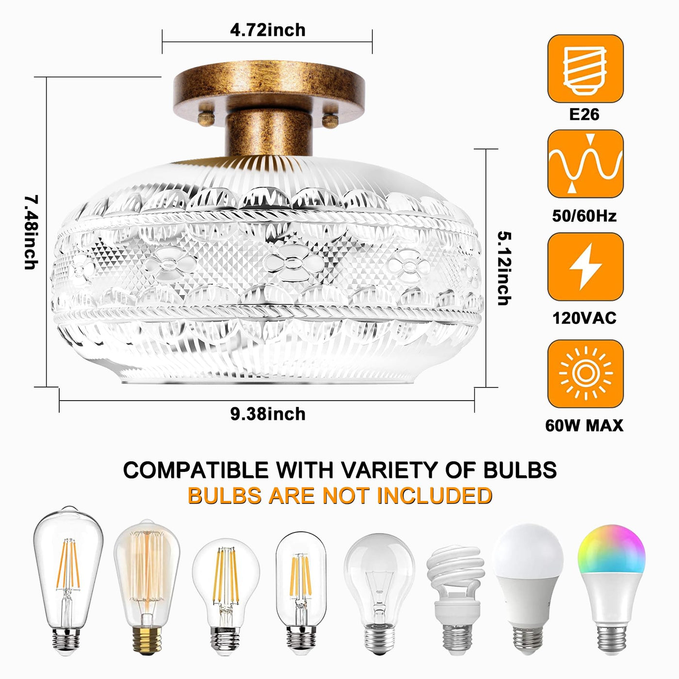 Q: What type of bulbs can I use with the APOTO Semi Flush Mount Ceiling Light Fixture?A: The APOTO Semi Flush Mount Ceiling Light Fixture is compatible with E26 base bulbs, which include LED, CFL, incandescent, and halogen options. Please note that the bulbs are not included, and the maximum wattage allowed is 60w.