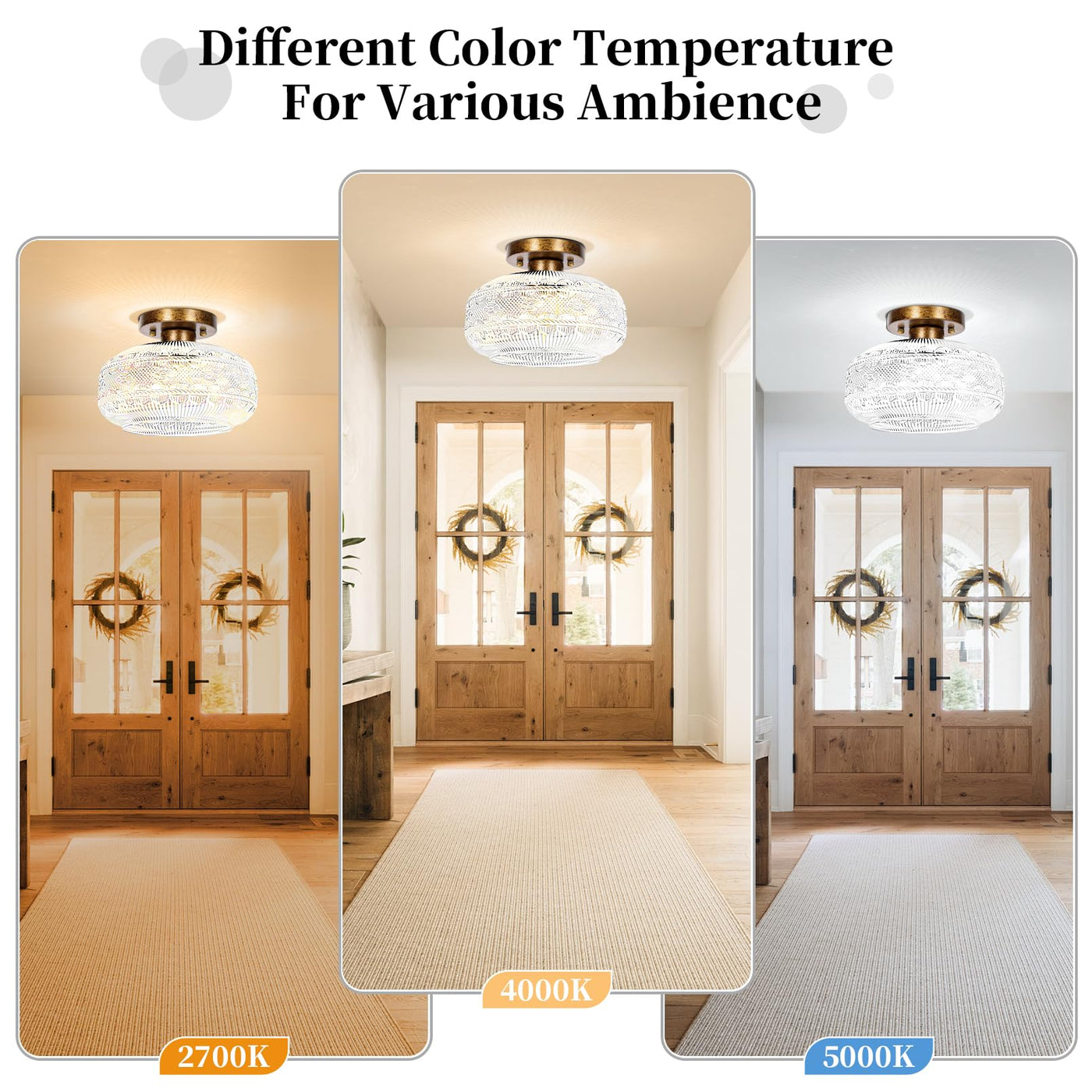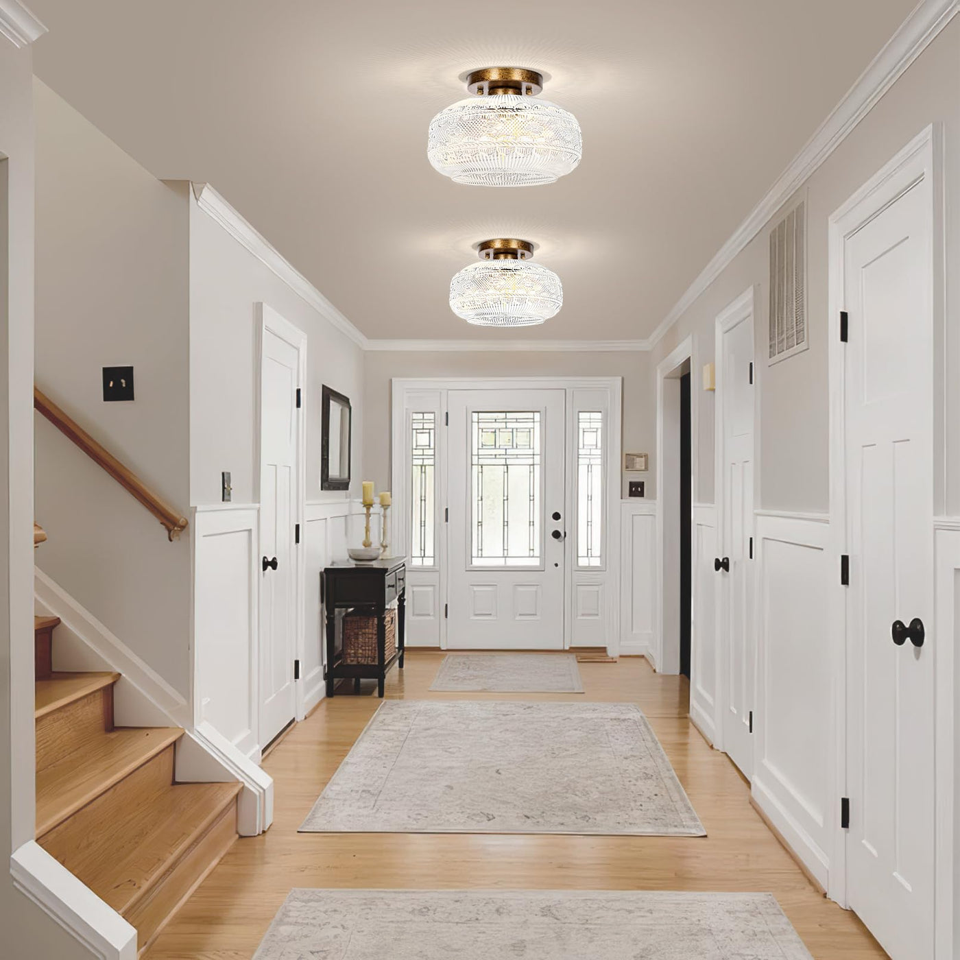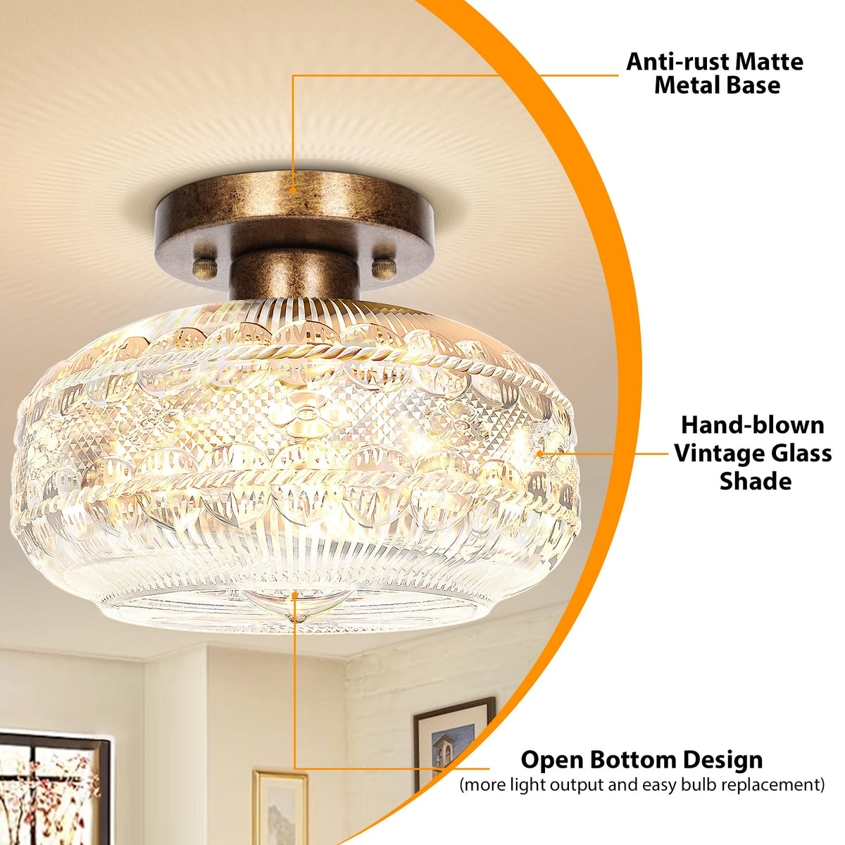 Apoto Semi Flush Mount Ceiling Light Fixture Antique Bronze,Globe Glass Hallway Light Fixtures Ceiling Light,Close To Vintage Ki