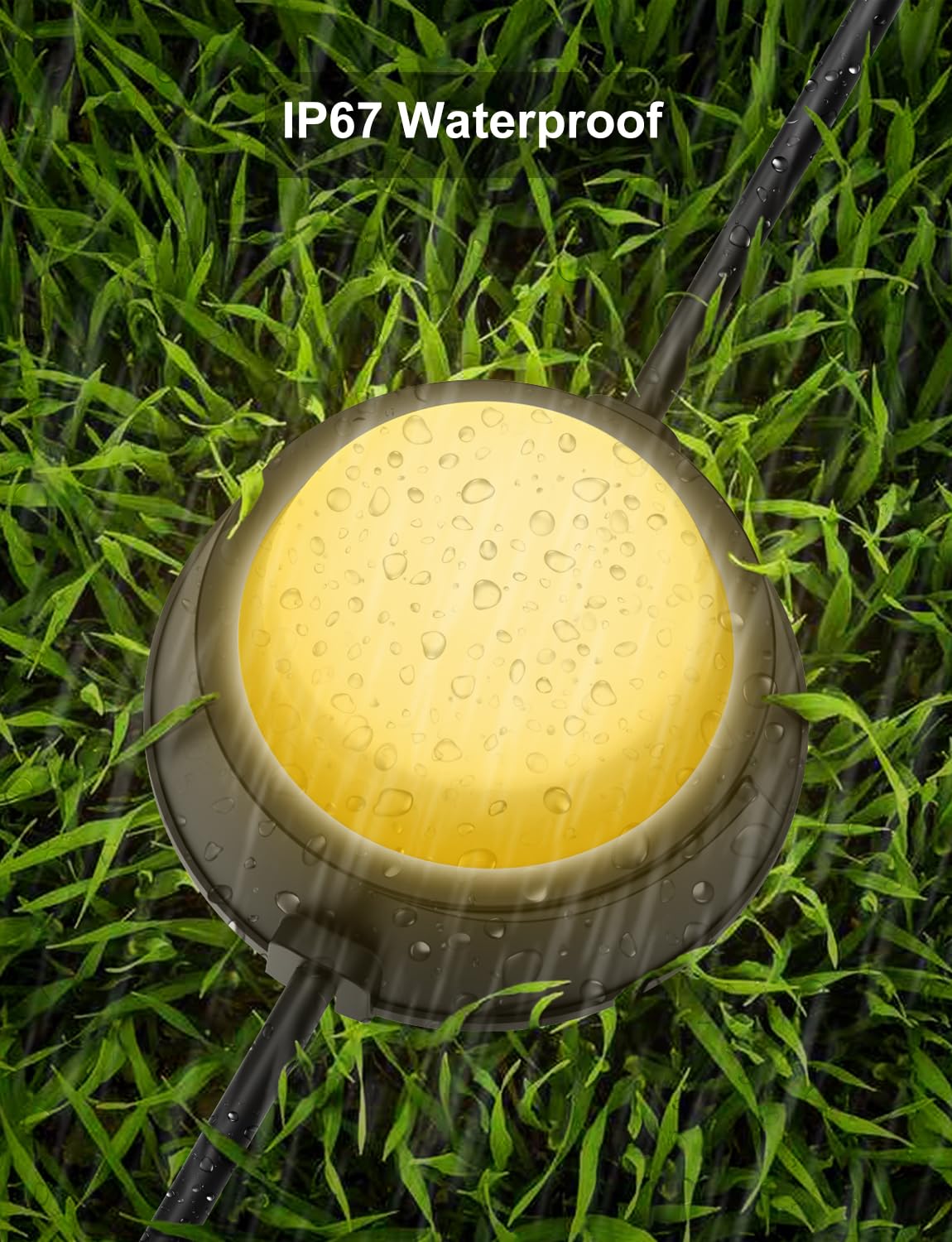 Q: Are these outdoor ground lights waterproof?A: Yes, both the lights and the controller are IP65 waterproof, making them suitable for outdoor use in various weather conditions. However, please note that the power adapter is not waterproof.