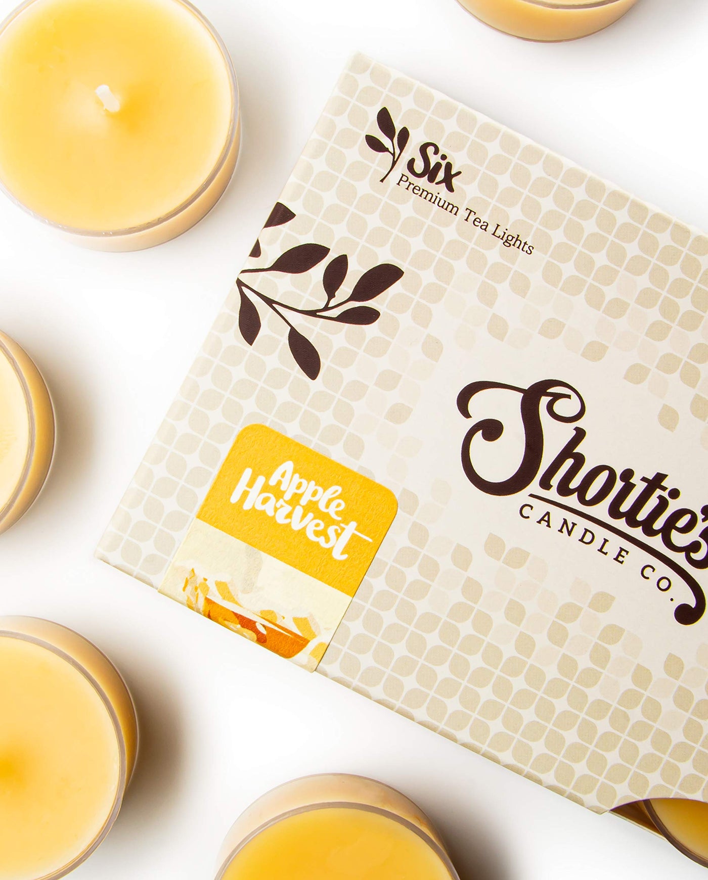 Apple Harvest Tealight Candles By Shortie'S - Highly Scented Beige Paraffin Wax - 6 Pack