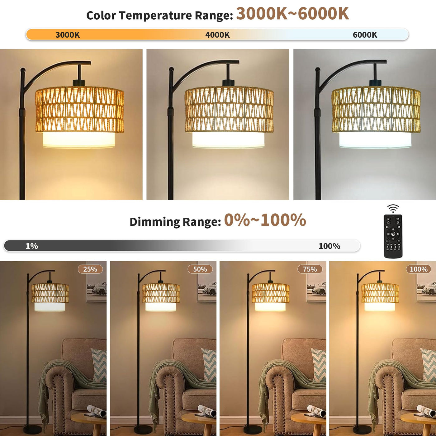 Ahdwdw Arc Floor Lamp Warms Your Home What Are Our Products Like? 1.The Lampshade Has Changed The Heavy Metal Material Of The Past, Using No Rust, No Fade Natural Bamboo Material, With Innovative And Unique Natural Style. 2.Black Floor Lamp Has A Classic Appearance, Not Only Not Bulky, But Also To Bring Rich And Vivid Light To Your Home, To Create The Atmosphere Of The Farmhouse. 3.Smooth Dimming From 0% To 100% With A Dimming Switch Without Flashing Or Buzzing. Provide Multiple Brightness, Comfortable, Quiet, And Relaxing Atmosphere For Your Daily Lighting.