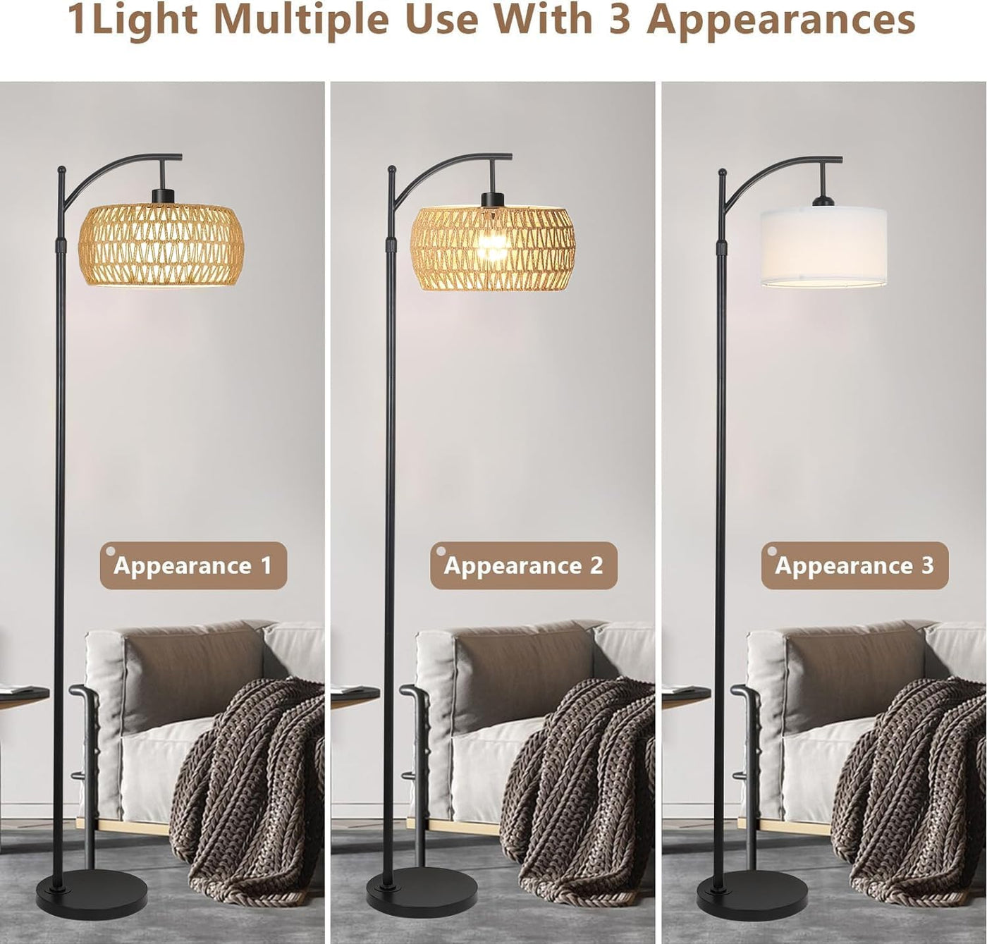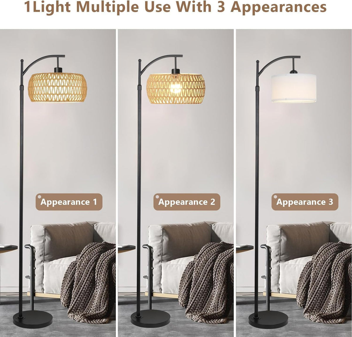 Q: What styles of home decor does the ZECOXOL Arc Floor Lamp complement?A: The ZECOXOL Arc Floor Lamp is designed to suit a variety of home decor styles, including contemporary, vintage, mid-century, traditional, and farmhouse. Its boho rattan and linen drum lampshade add a unique touch that enhances any room's aesthetic.