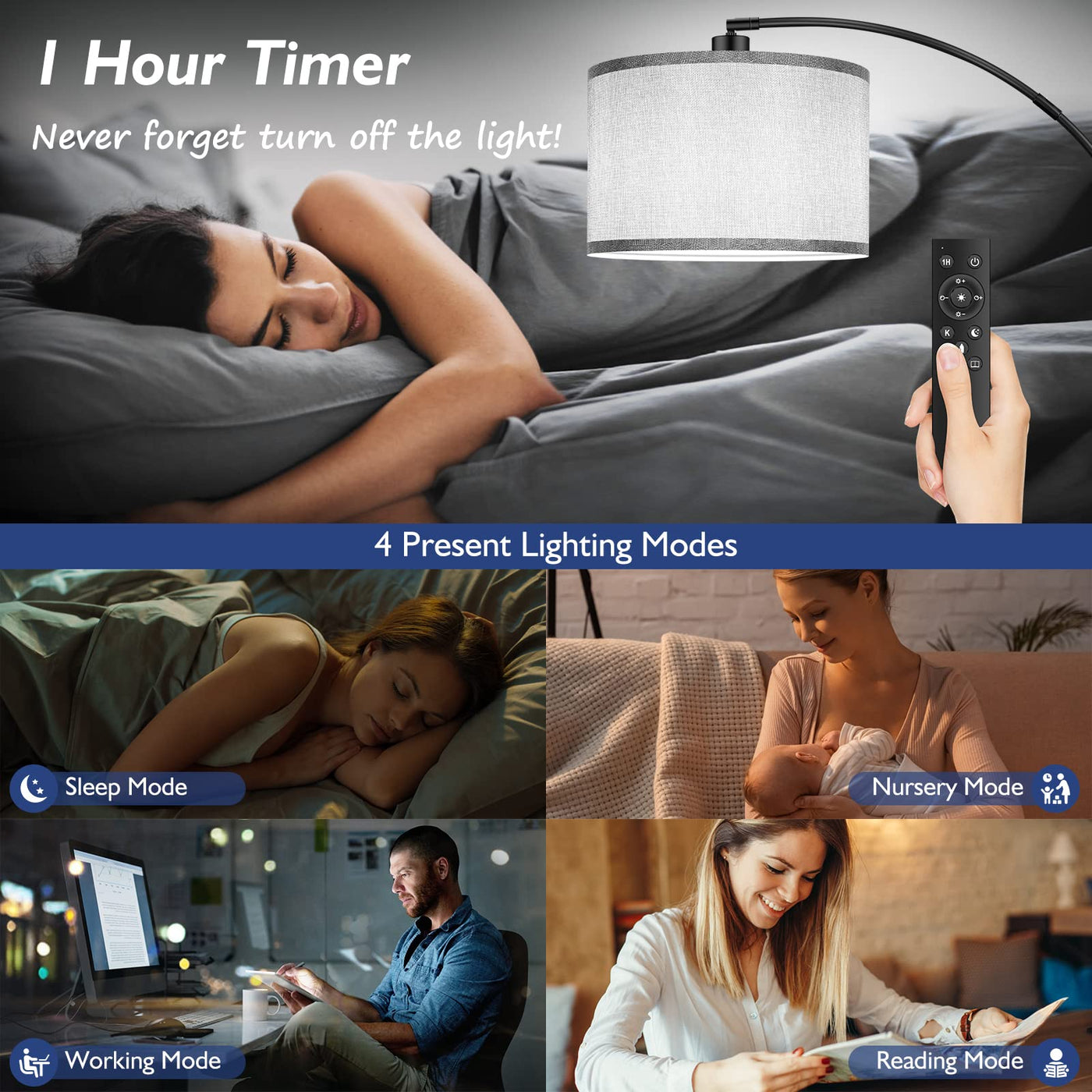 Q: Can I adjust the brightness and color temperature of the lamp?A: Yes, the Arc Floor Lamp comes with a stepless dimmable feature that allows you to adjust brightness from 1% to 100%. It also offers three color temperature settings ranging from 3000K to 6000K, all controlled via the included remote.