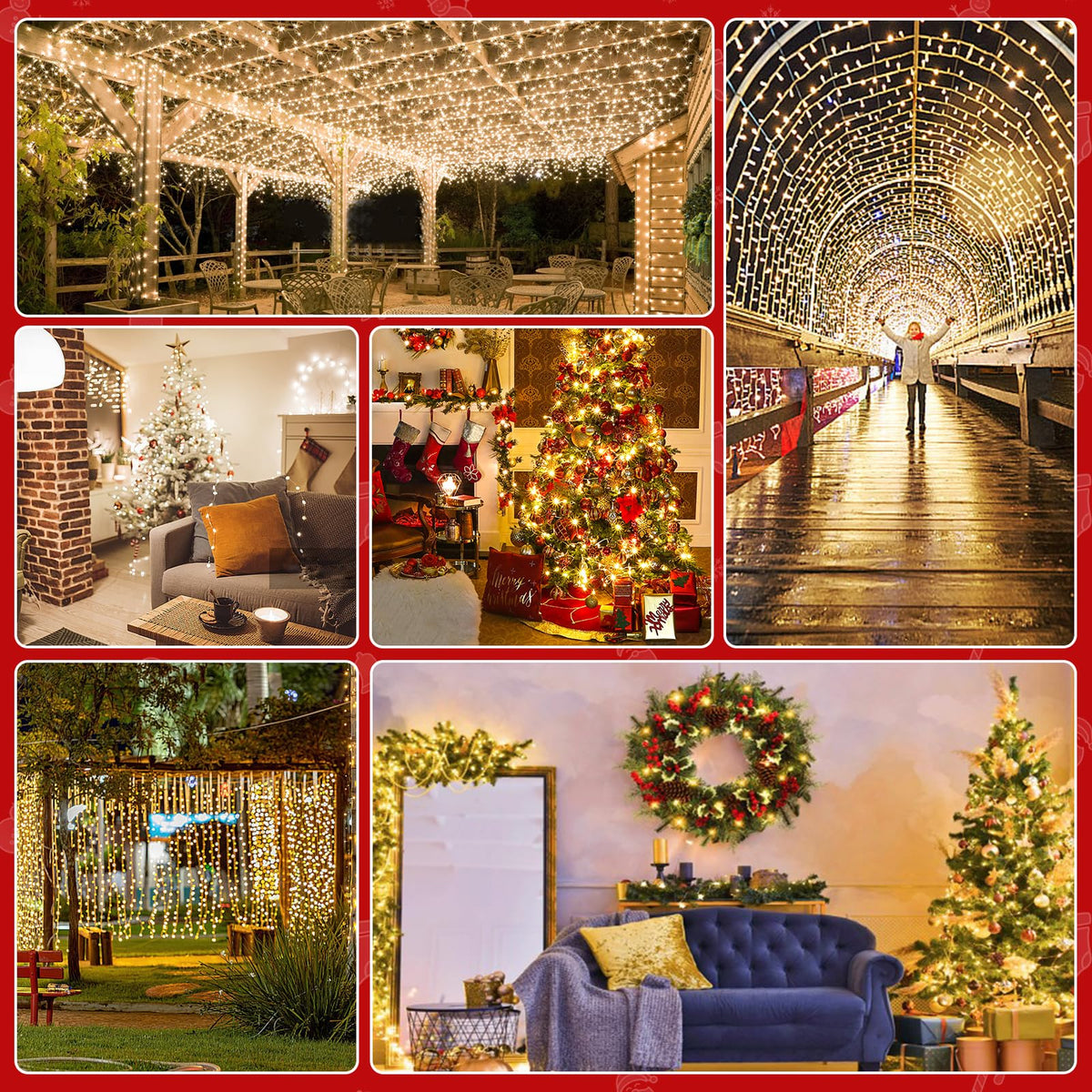 Areker 164Ft 2000Led Christmas Lights Outdoor Indoor Green Wire Christmas Day String Lights Plug In Ultra Bright 8 Modes Waterproof Fairy Lights For Xmas Tree Party Wedding Decoration Warm White
