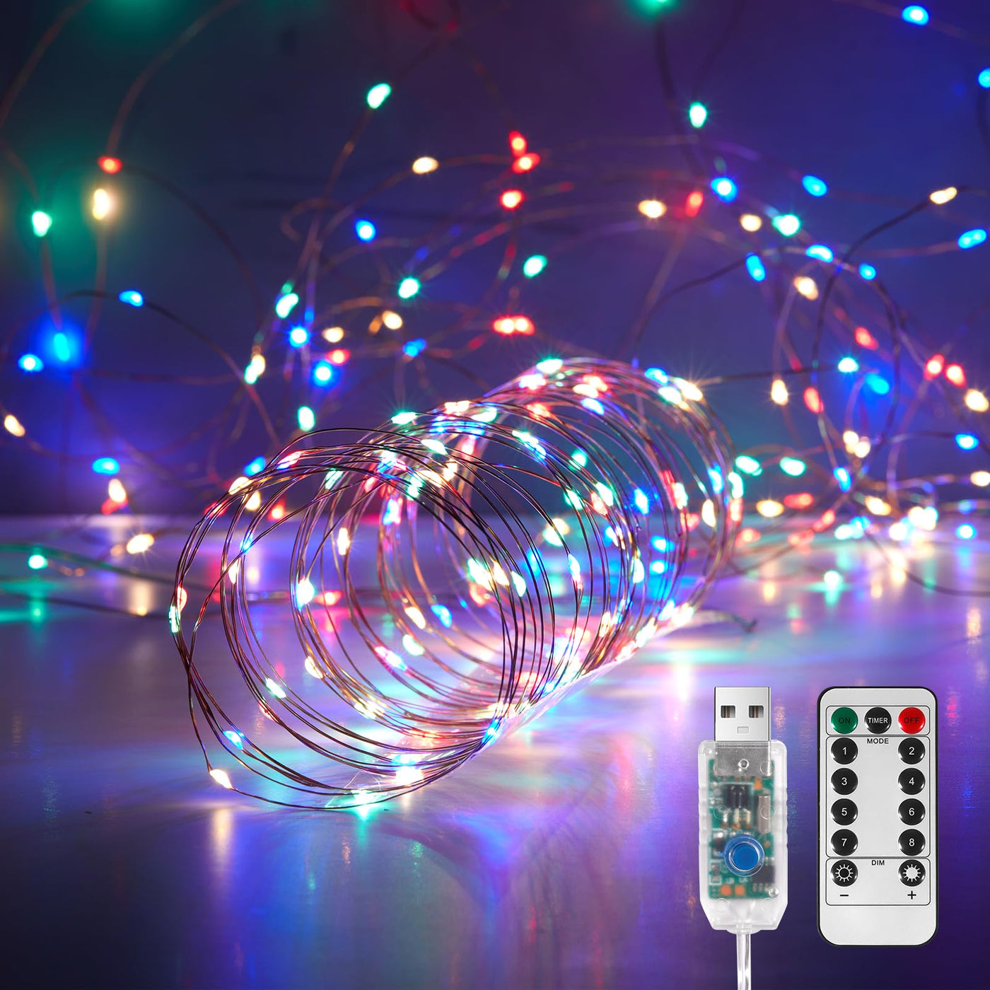 Versatile 8 Lighting Modes - Includes combination, wave, sequential, slow fade, chasing flash, slow glow, flash, and steady on modes. | Remote Control & Timer - Easily turn lights on/off, adjust brightness, and select modes with the remote; set a timer for automatic shut-off. | Energy-Saving & Long-lasting - High quality copper wire ensures low power consumption and long lifespan. | Waterproof & Flexible Design - Waterproof and bendable wire for indoor/outdoor use and creative decoration. | USB Powered - Convenient USB plug works with any USB port, including those on computers, laptops, and phone chargers.