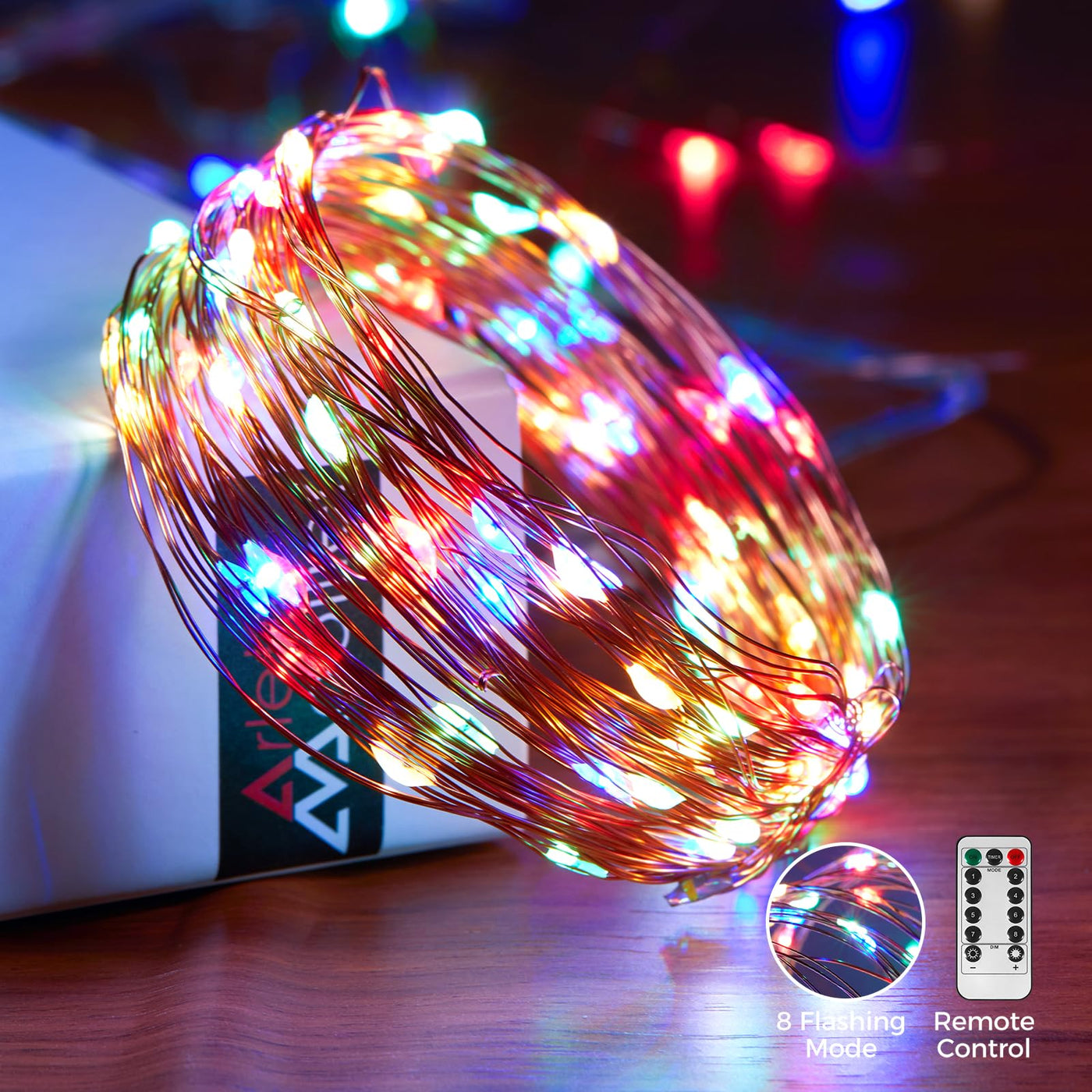 Q: How long is the Ariceleo fairy lights string, and what is the material used?A: The Ariceleo fairy lights come in a 32.8 ft length and are made from high-quality copper wire, ensuring low power consumption and a long lifespan, perfect for extended use during events or seasonal decorations.