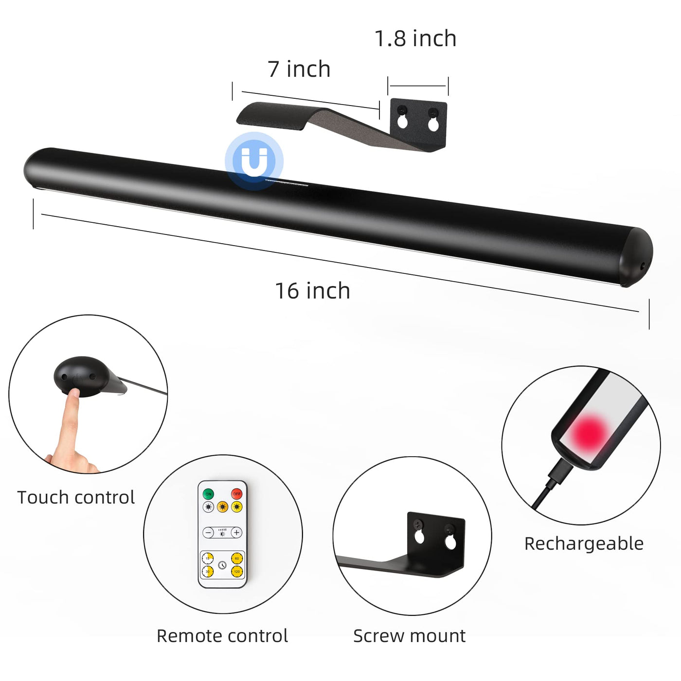 Arixinks Wireless Picture Light 16Inch Rechargeable Battery Painting Light Full Metal With Remote, Led Accent Art Display Light