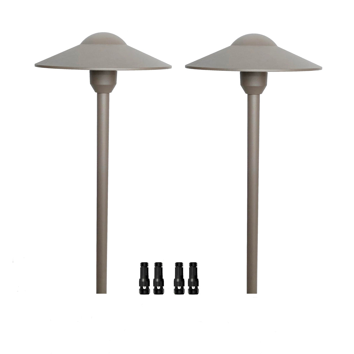 Outstanding Specifications: Solid cast aluminum low voltage landscape path lighting Top shade diameter: 8.3" Stem length: 20.9" Product size: 8.3"(W.) x 20.9"(H.) Wire style: 3ft 18AWG SPT-1W copper leading cable Input low voltage: 12V AC/DC IP rating:IP44 Socket Type: G4 Low volt transformer required(not included) 4 wire connectors included since March 2rd,2023 Ideal pure white color underside of the cap ensures great reflective led bulb emitting Wide applications: landscape path lights,low voltage path lights,low voltage landscape lights,holiday path lights led path lights for driveway walkway lights outdoor,landscape path lights 12v portfolio landscape path lights low voltage