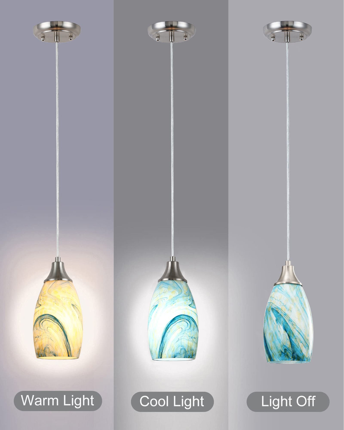 Q: Is this pendant light safe for damp locations?A: Yes, the Art Glass Mini Pendant Light is ETL listed for both dry and damp locations, ensuring its safety for various indoor environments. It requires a hardwired connection and comes with all necessary mounting hardware for easy installation.
