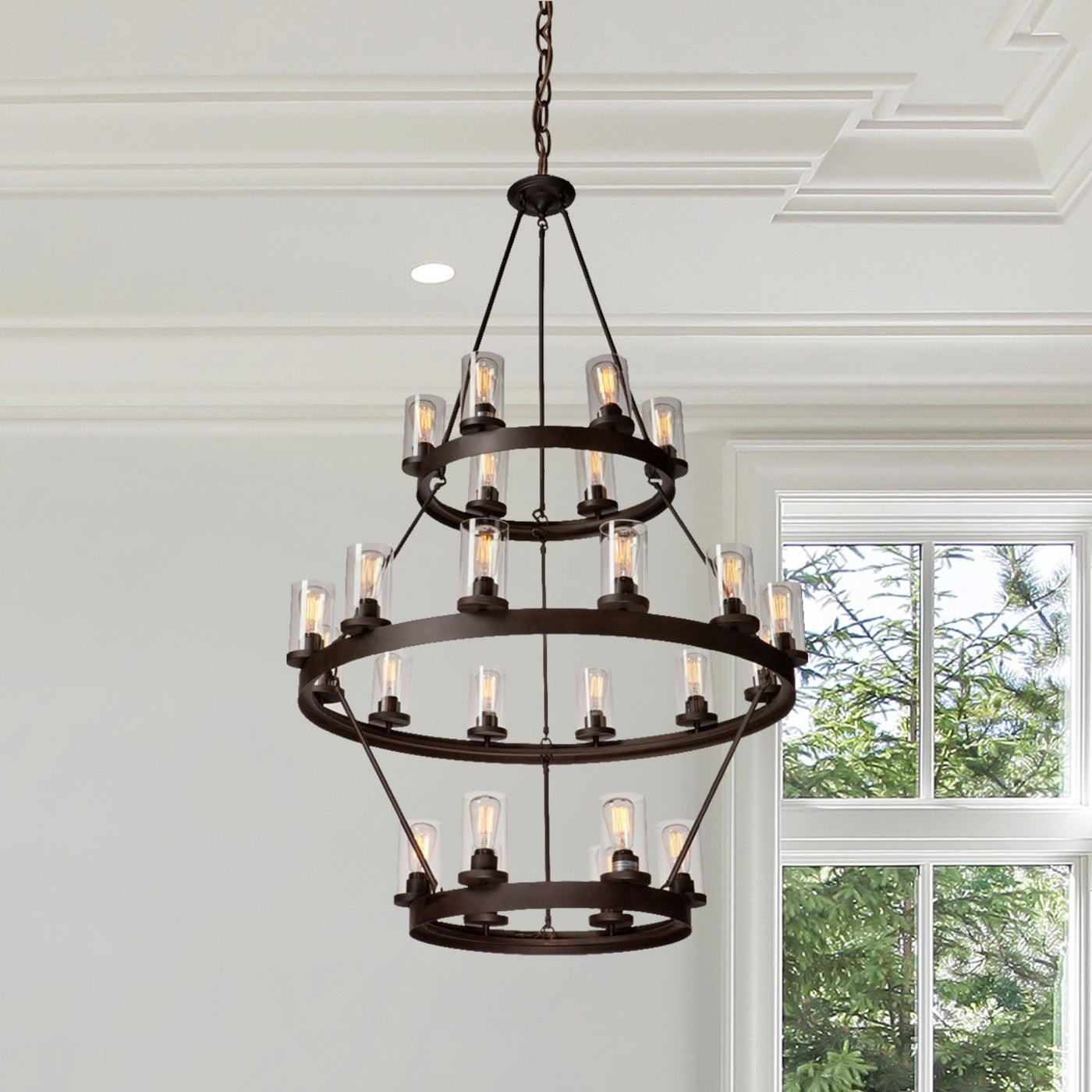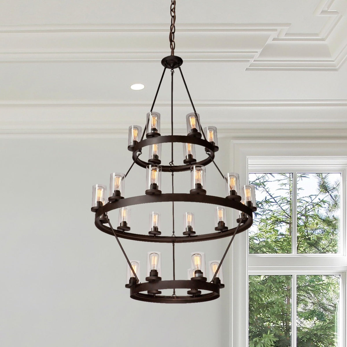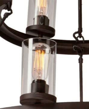Illuminate your space with the stunning Menlo Park Collection 24 Light Foyer Chandelier by Art Craft Lighting. This exquisite chandelier features a rich dark chocolate finish that effortlessly complements any decor style, making it a versatile addition to your home or office. The clear cylinder glass enhances the elegance of the design, while the spherical clean lines establish it as an instant classic. Perfectly paired with Edison filament bulbs, this chandelier conveys a charming retro aesthetic that will captivate your guests.