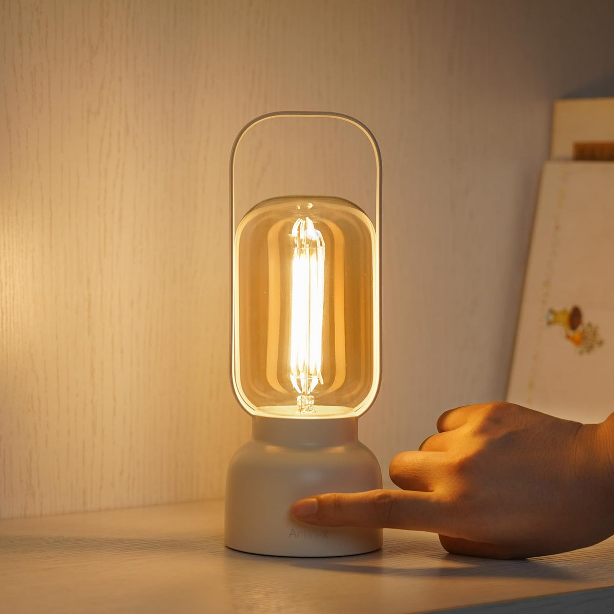 Artin-X Retro Cordless Lantern Table Lamp, 40 Hours Long Lasting Dimming Night Light, Small Rechargeable Battery Operated Light For Cruise Nightstand Travel Camping Nightstand, Decoration, Gift- White