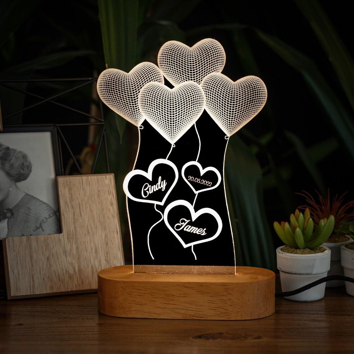 Artistic Gifts 3D Illusion Personalized LED Table Lamp for Couples| Customized Name Night Lamp for Wedding Marriage Anniversary|