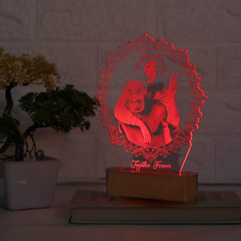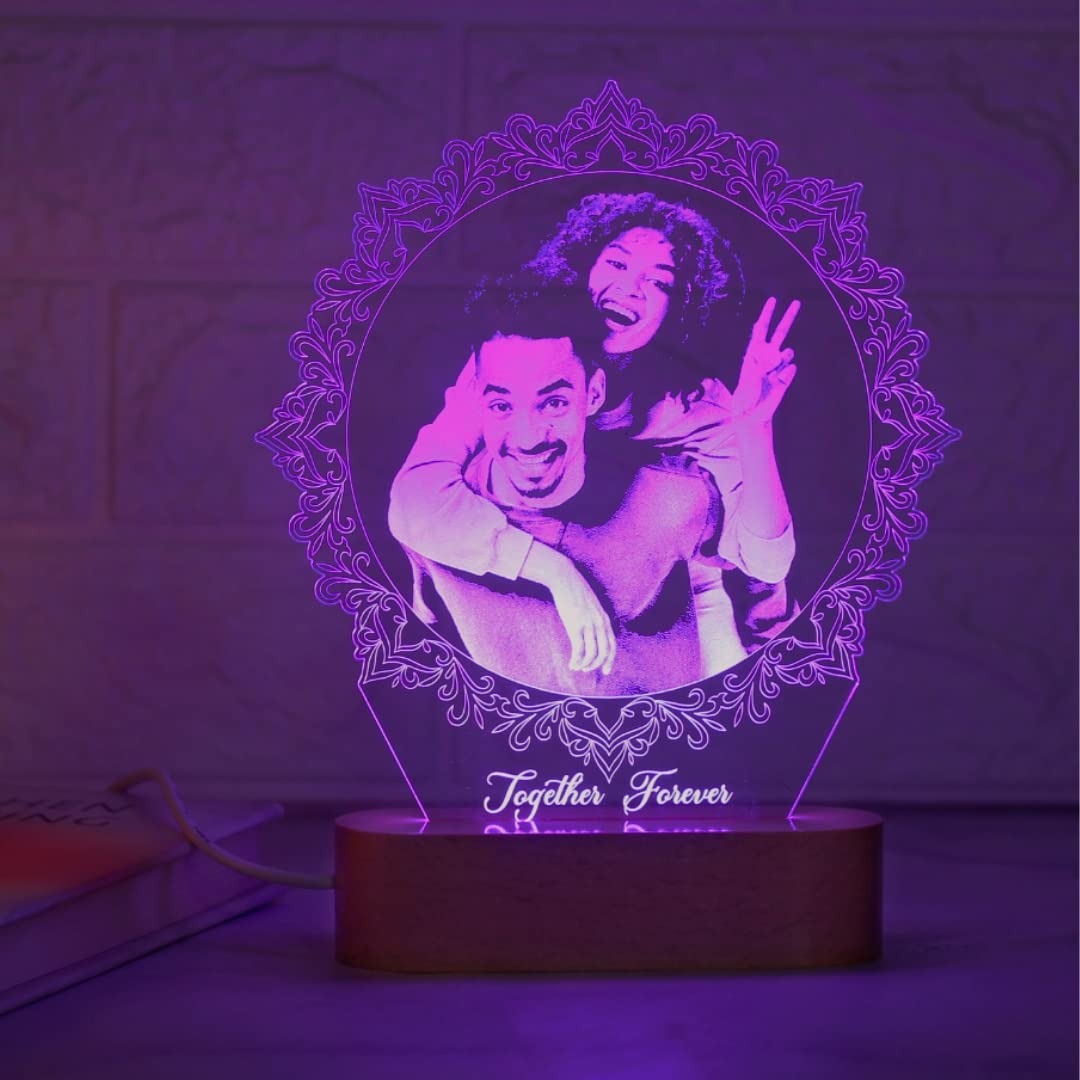 Artistic Gifts Acrylic Personalized Dodecagon Shape 3D Illusion Photo Lamp For Couples|Photo Frame W/ Customized Photo,Name & Da