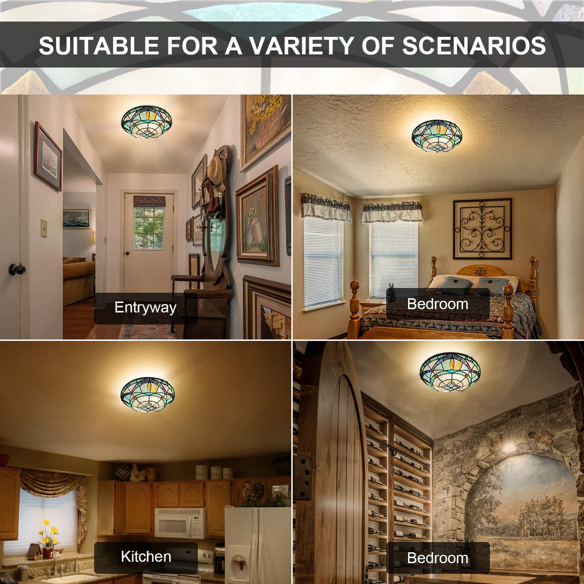 The ARTZONE Tiffany Ceiling Light is designed with real stained glass, showcasing a stunning blue color that filters soft, gentle light into your environment. Its dimensions of 12 inches in width and 2.8 inches in height make it an ideal size for placement in kitchens, hallways, or bedrooms. This ceiling light not only illuminates your space but also adds a vintage charm, making it a fantastic choice for those who appreciate artistic design and craftsmanship.