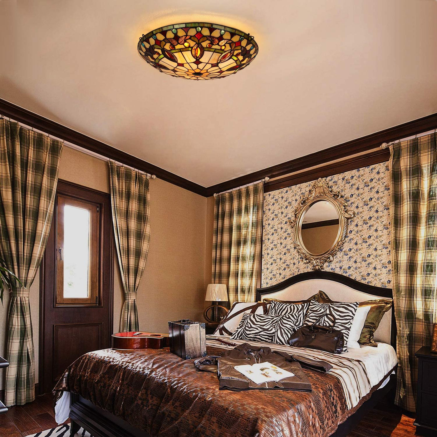 Stunning Tiffany Design: This Ceiling Light Features A Beautiful Stained Glass Design That Adds A Vintage Touch To Your Home Décor.